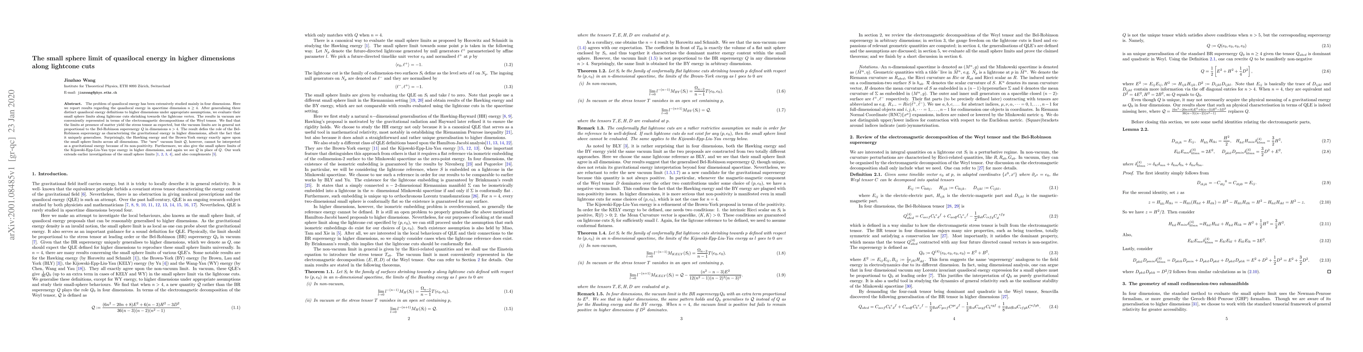 The study investigates quasilocal energy in higher dimensions, finding that the Bel-Robinson superenergy does not characterise gravitational energy, but Hawking and Brown-York energies agree across all dimensions.