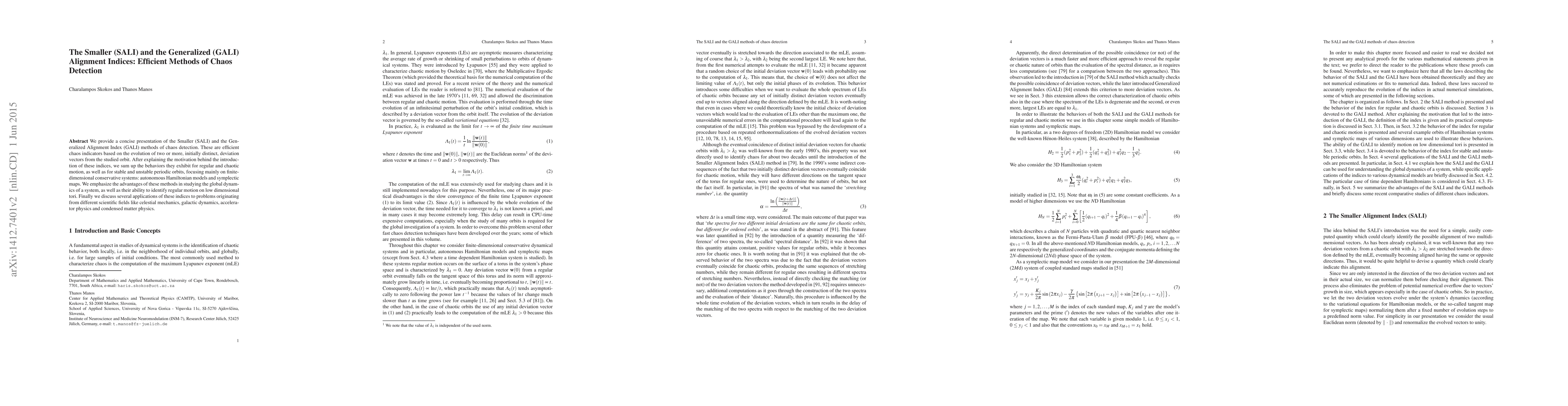 Two efficient chaos detection methods (SALI and GALI) were developed to analyze regular and chaotic motion in various systems, including celestial mechanics and physics.