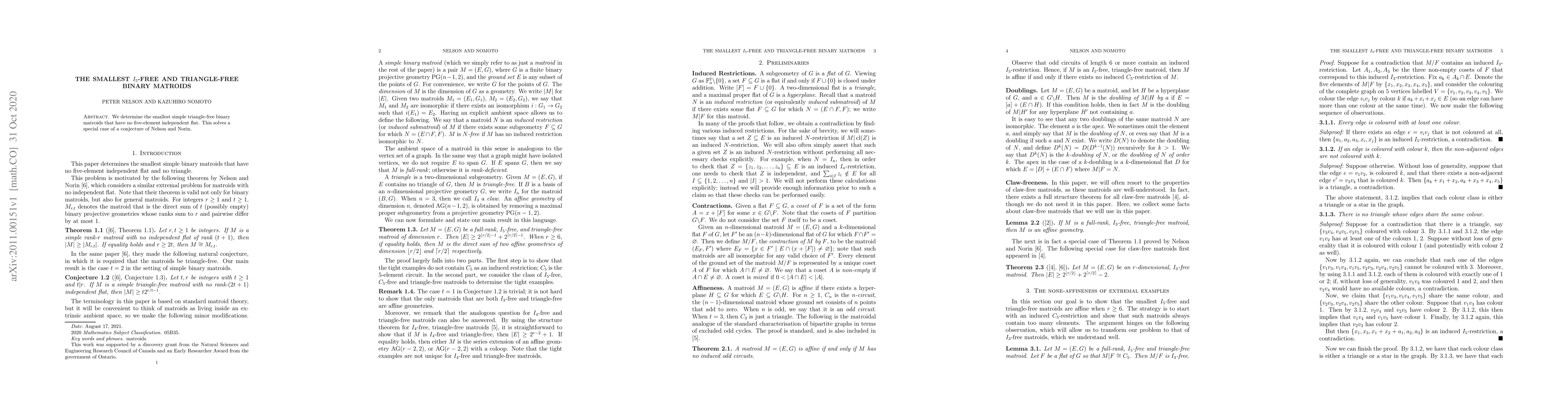 We determine the smallest simple triangle-free binary matroids that have no five-element independent flat. This solves a special case of a conjecture of Nelson and Norin.