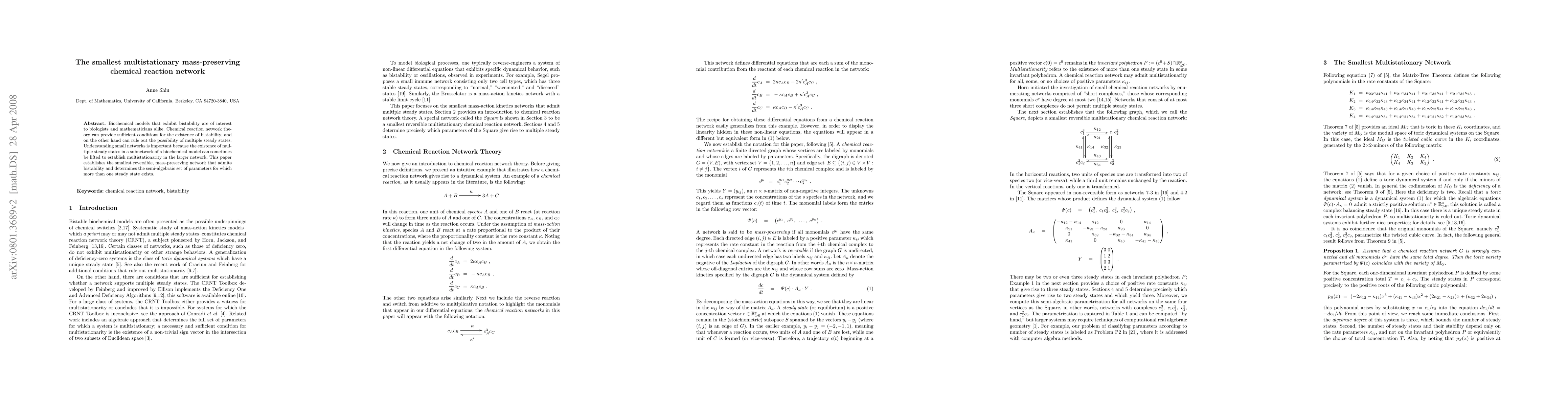 Researchers discovered the smallest reversible chemical reaction network that exhibits bistability and can support multiple steady states, advancing our understanding of biochemical models.