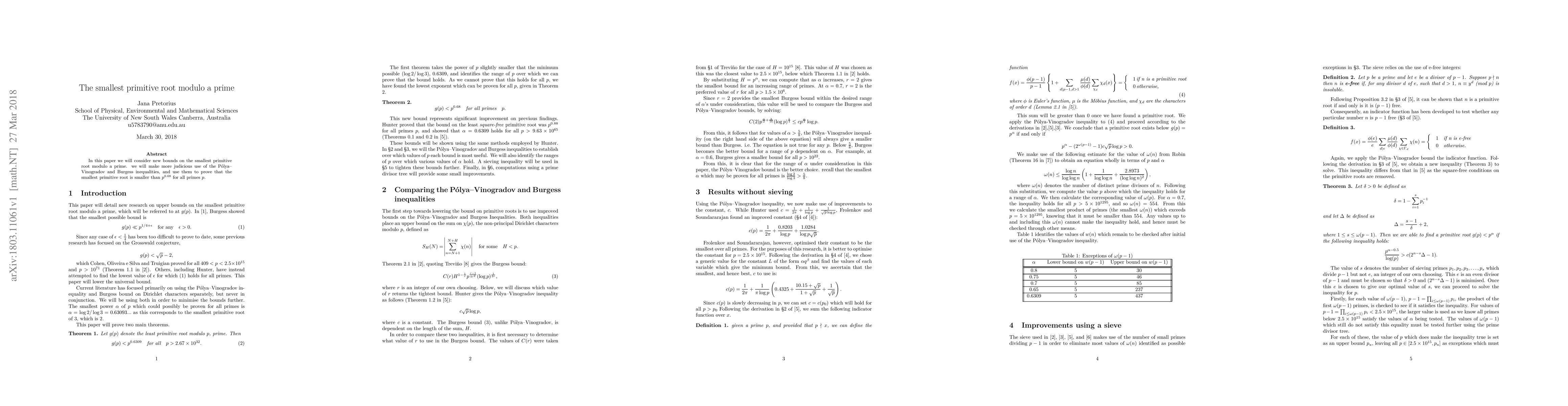 The research used a combination of Pólya-Vinogradov and Burgess inequalities to establish bounds on the smallest primitiveroot modulo a prime.