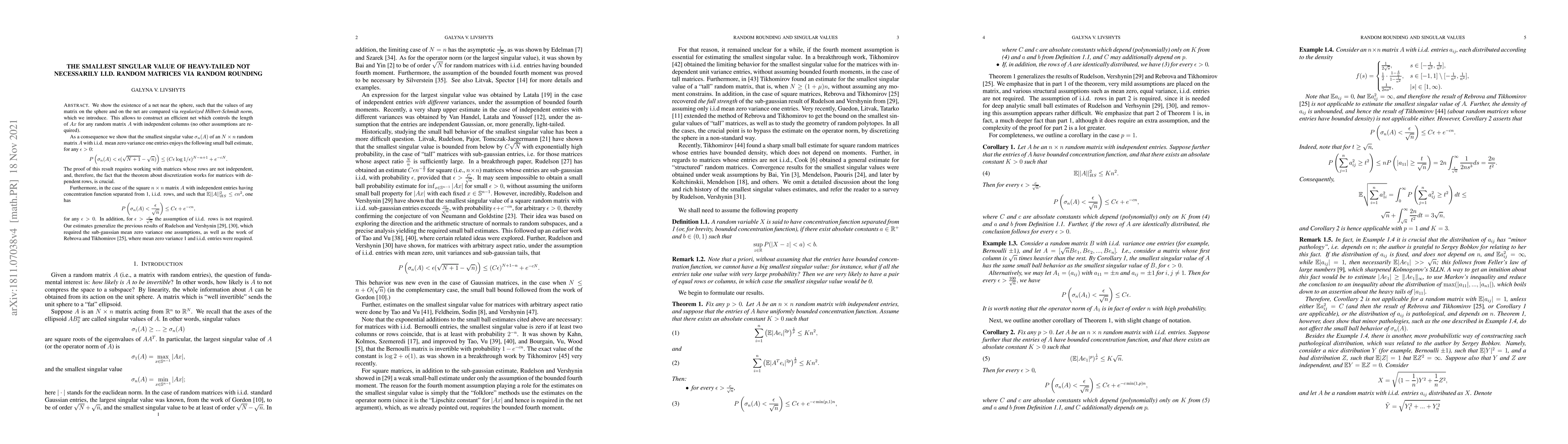 We are concerned with the small ball behavior of the smallest singular value of random matrices. Often, establishing such results involves, in some capacity, a discretization of the unit sphere. This requires bounds on the norm of the matrix, and the latter bounds require strong assumptions on the distribution of the entries, such as bounded fourth moments (for a weak estimate), sub-gaussian tails (for a strong estimate), and structural assumptions such as mean zero and variance one. Recently, Rebrova and Tikhomirov developed a discretization procedure which does not rely on strong tail assumptions for the entries. However, their argument still required the structural assumptions of mean zero, variance one i.i.d. entries. In this paper, we discuss an efficient discretization of the unit sphere, which works with exponentially high probability, does not require any such structural assumptions, and, furthermore, does not require independence of the rows of the matrix. We show the existence of nets near the sphere, which compare values of any (deterministic) random matrix on the sphere and on the net via the regularized the Hilbert-Schmidt norm, which we introduce. Such refinement is a form of averaging, and enjoys strong large deviation properties. As a consequence we show sharp small ball estimates for the smallest singular value of square random matrices under mild assumptions, and for the random matrices with arbitrary aspect ratio.