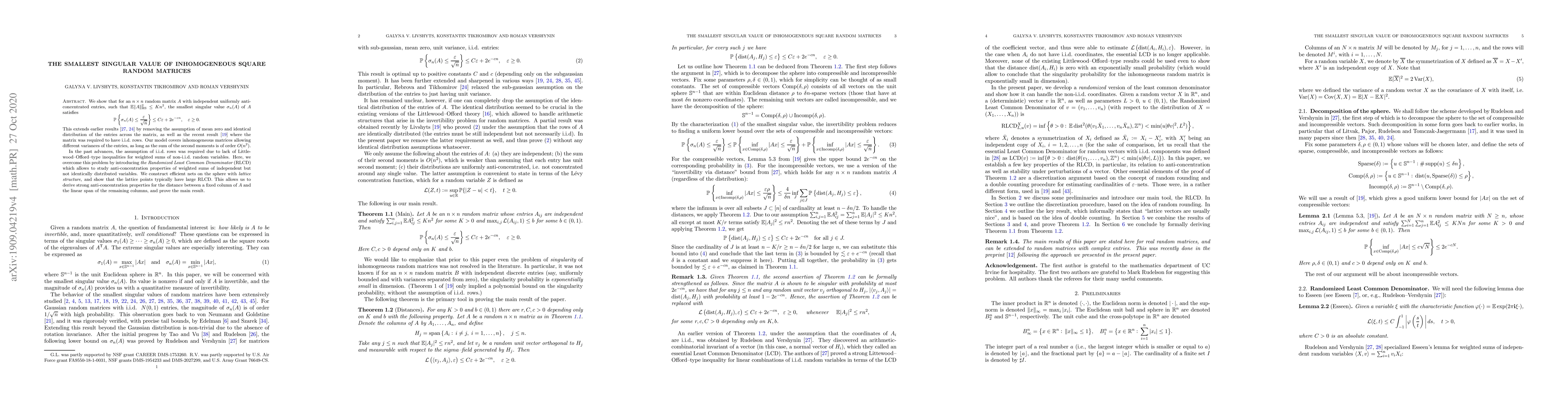 This paper extends prior results on the smallest singular value of random matrices by considering inhomogeneous matrices with independent but not identically distributed entries. It introduces the Randomized Least Common Denominator (RLCD) to study anti-concentration properties of weighted sums and proves that the smallest singular value has a high probability of being significantly larger than a certain threshold.