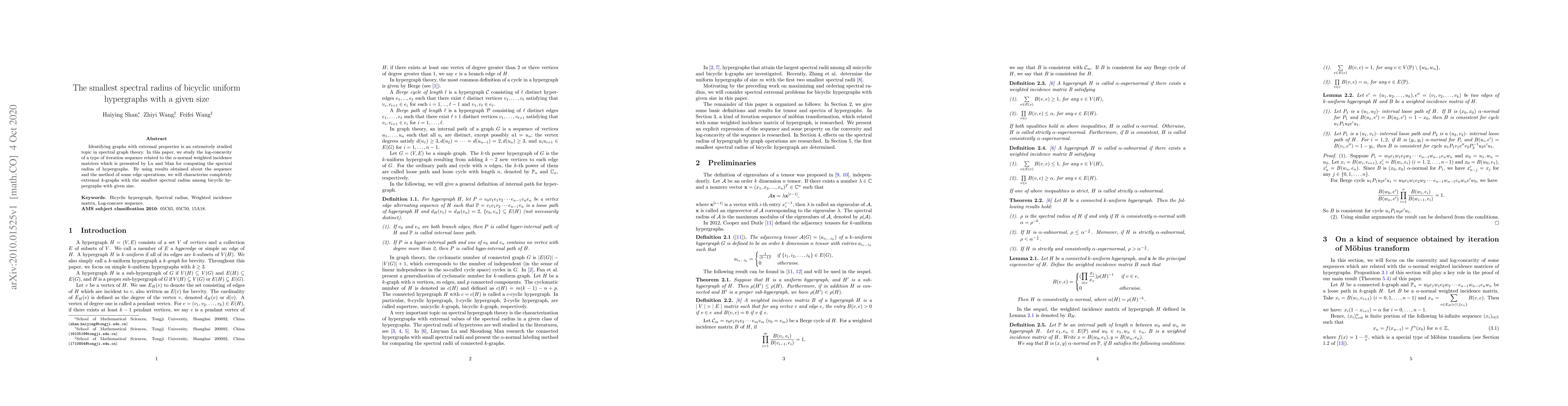 Identifying graphs with extremal properties is an extensively studied topic in spectral graph theory. In this paper, we study the log-concavity of a type of iteration sequence related to the $\alpha$-normal weighted incidence matrices which is presented by Lu and Man for computing the spectral radius of hypergraphs. By using results obtained about the sequence and the method of some edge operations, we will characterize completely extremal k-graphs with the smallest spectral radius among bicyclic hypergraphs with given size.