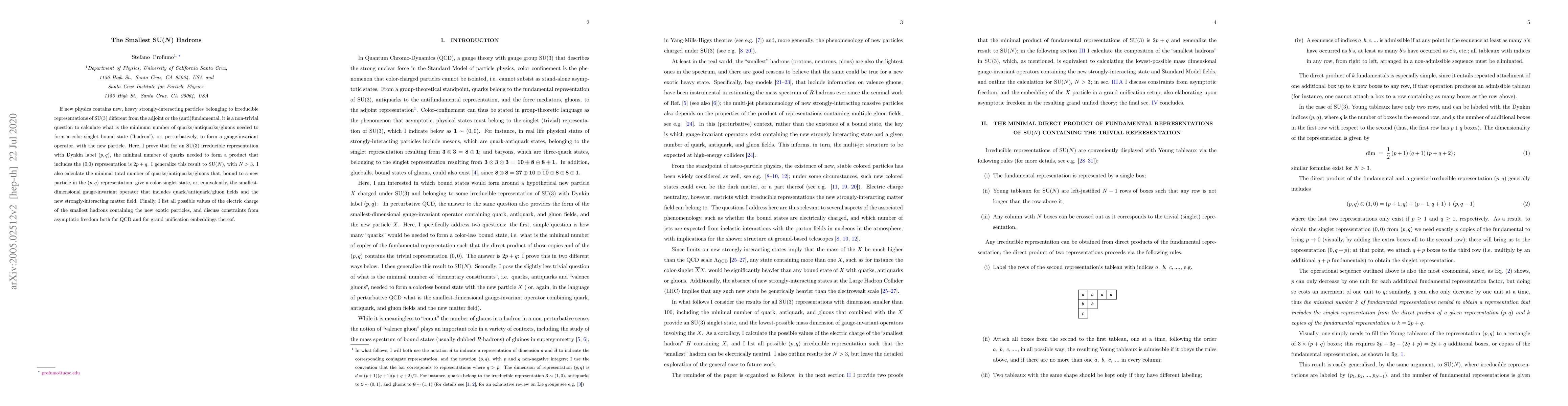 If new physics contains new, heavy strongly-interacting particles belonging to irreducible representations of SU(3) different from the adjoint or the (anti)fundamental, it is a non-trivial question to calculate what is the minimum number of quarks/antiquarks/gluons needed to form a color-singlet bound state ("hadron"), or, perturbatively, to form a gauge-invariant operator, with the new particle. Here, I prove that for an SU(3) irreducible representation with Dynkin label $(p,q)$, the minimal number of quarks needed to form a product that includes the (0,0) representation is $2p+q$. I generalize this result to SU($N$), with $N>3$. I also calculate the minimal total number of quarks/antiquarks/gluons that, bound to a new particle in the $(p,q)$ representation, give a color-singlet state, or, equivalently, the smallest-dimensional gauge-invariant operator that includes quark/antiquark/gluon fields and the new strongly-interacting matter field. Finally, I list all possible values of the electric charge of the smallest hadrons containing the new exotic particles, and discuss constraints from asymptotic freedom both for QCD and for grand unification embeddings thereof.