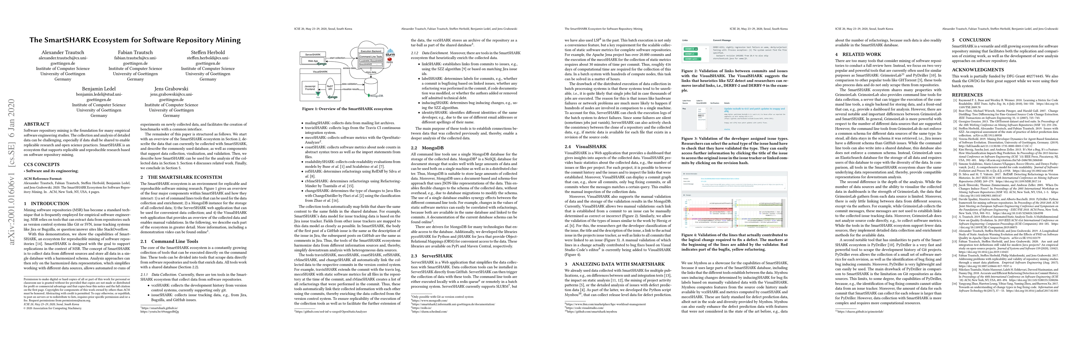 Title: The SmartSHARK Ecosystem for Software Repository Mining Summary: SmartSHARK facilitates replicable and reproducible empirical software engineering studies through its ecosystem for mining software repositories, promoting open science practices.