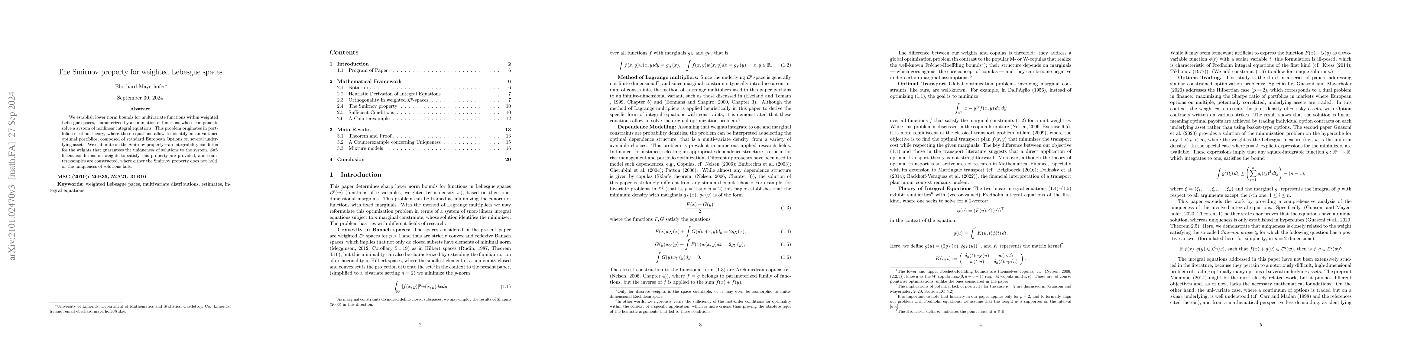 We obtain lower norm bounds for multivariate functions in weighted Lebesgue spaces on unbounded domains in finite Euclidean space. These are identified by the solution of a system of nonlinear integral equations, with linear constrains on one-dimensional marginals. We recognize the importance of the Smirnov condition for the corresponding weights, which guarantees uniqueness of solutions of the system. Sufficient conditions on weights are formulated so to satisfy the Smirnov property, and counterexamples are constructed, when the property is violated.