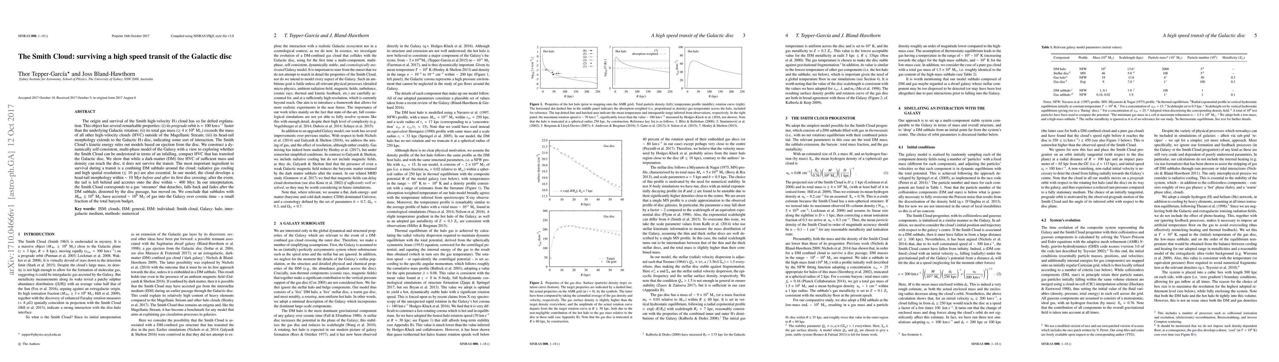 The Smith Cloud, a high-velocity HI cloud, defies explanation due to its fast prograde orbit, large gas mass, and head-tail morphology. A model suggests it survives transit through the Galactic disc with the help of a dark-matter subhalo, radiative cooling, and high resolution, implying subhalos have accreted significant gas into the Galaxy over cosmic time.