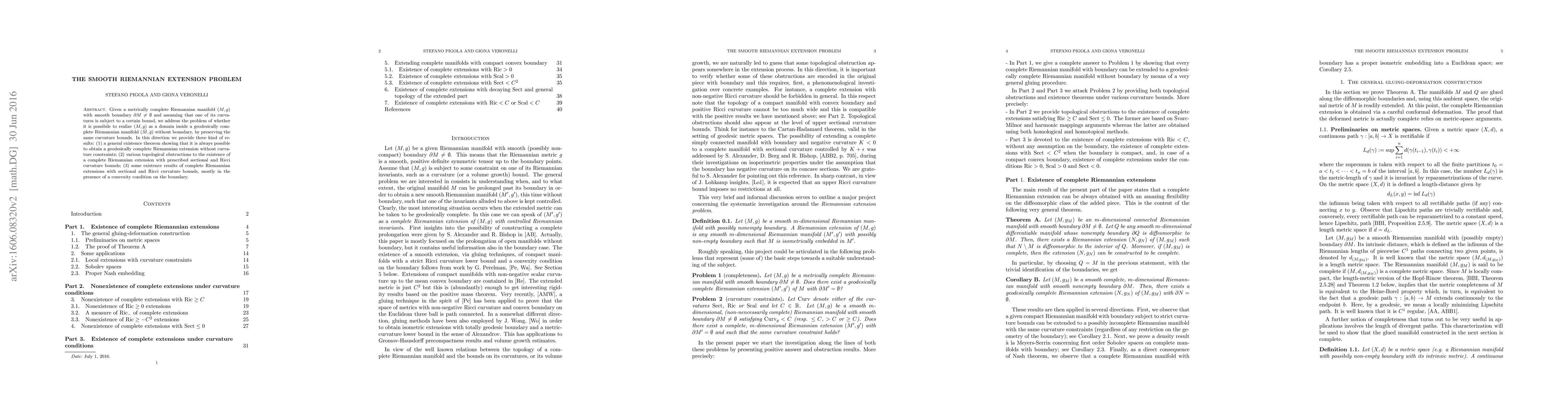 This research paper investigates if a Riemannian manifold with curvature bounds can be extended to a geodesically complete manifold without boundary while preserving the same curvature bounds.