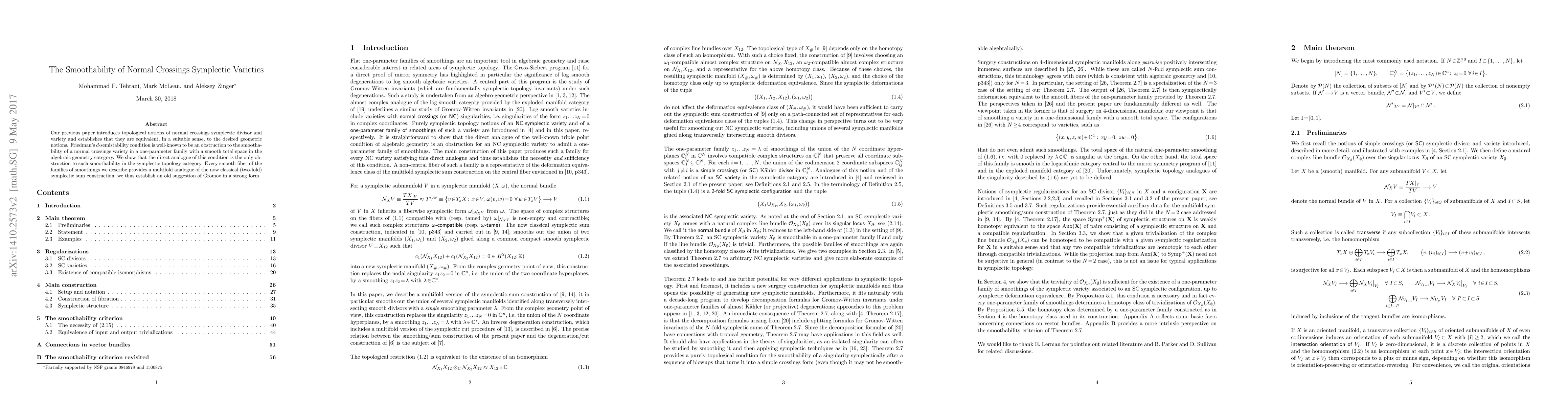 Our previous paper introduces topological notions of normal crossings symplectic divisor and variety and establishes that they are equivalent, in a suitable sense, to the desired geometric notions. Friedman's d-semistability condition is well-known to be an obstruction to the smoothability of a normal crossings variety in a one-parameter family with a smooth total space in the algebraic geometry category. We show that the direct analogue of this condition is the only obstruction to such smoothability in the symplectic topology category. Every smooth fiber of the families of smoothings we describe provides a multifold analogue of the now classical (two-fold) symplectic sum construction; we thus establish an old suggestion of Gromov in a strong~form.