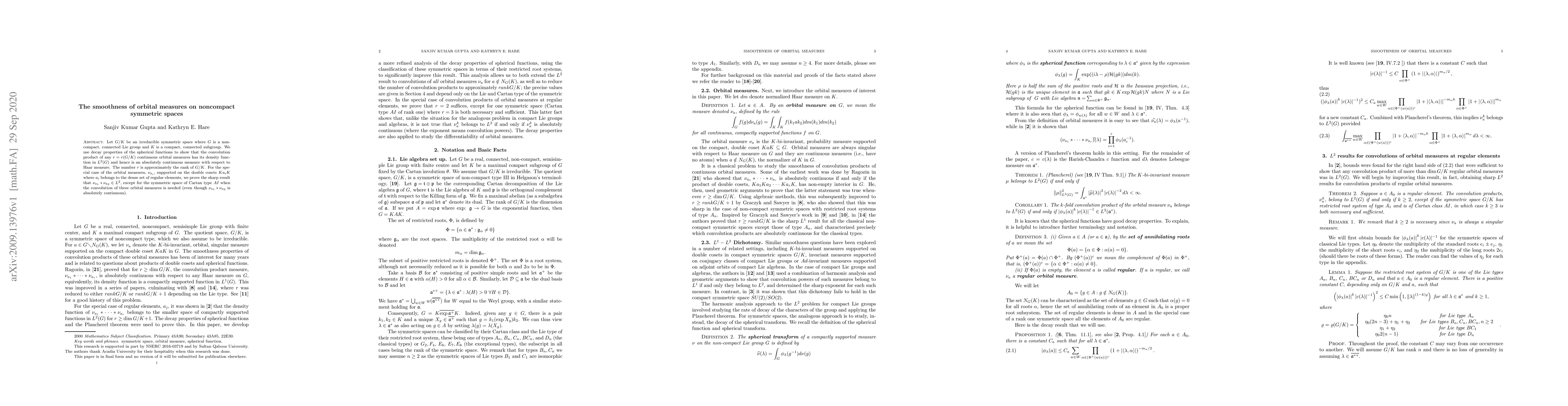 Let $G/K$ be an irreducible symmetric space where $G$ is a non-compact, connected Lie group and $K$ is a compact, connected subgroup. We use decay properties of the spherical functions to show that the convolution product of any $r=r(G/K)$ continuous orbital measures has its density function in $% L^{2}(G)$ and hence is an absolutely continuous measure with respect to Haar measure. The number $r$ is approximately the rank of $G/K$. For the special case of the orbital measures, $\nu_{a_{i}}$, supported on the double cosets $Ka_{i}K$ where $a_{i}$ belongs to the dense set of regular elements, we prove the sharp result that $\nu_{a_{1}}\ast \nu_{a_{2}}\in L^{2},$ except for the symmetric space of Cartan type $AI$ when the convolution of three orbital measures is needed (even though $\nu_{a_{1}}\ast \nu_{a_{2}}$ is absolutely continuous).