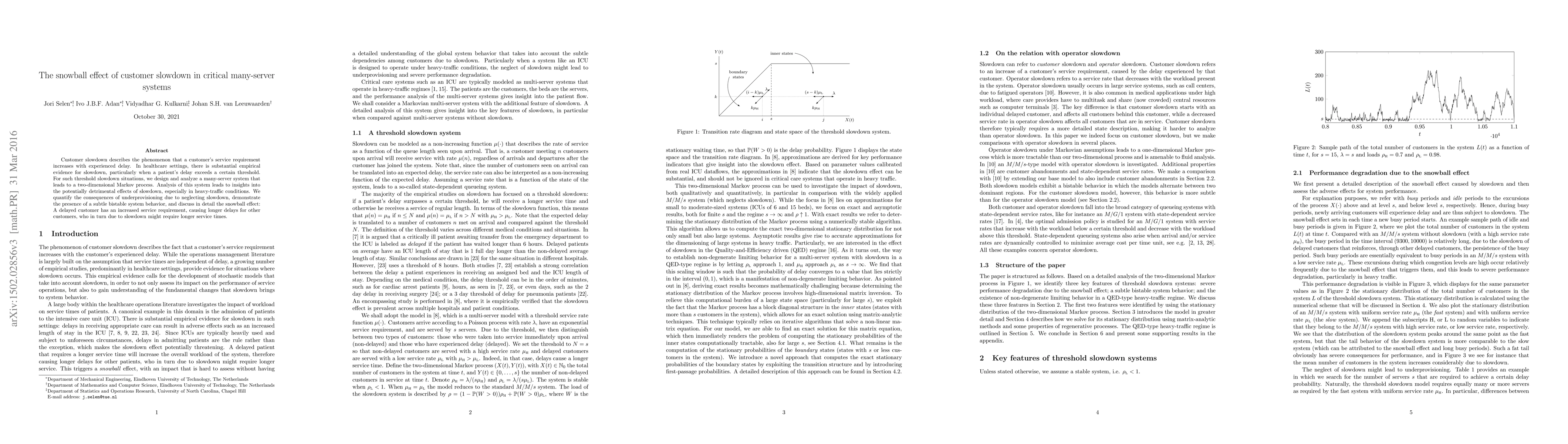 Customer slowdown describes the phenomenon that a customer's service requirement increases with experienced delay. In healthcare settings, there is substantial empirical evidence for slowdown, particularly when a patient's delay exceeds a certain threshold. For such threshold slowdown situations, we design and analyze a many-server system that leads to a two-dimensional Markov process. Analysis of this system leads to insights into the potentially detrimental effects of slowdown, especially in heavy-traffic conditions. We quantify the consequences of underprovisioning due to neglecting slowdown, demonstrate the presence of a subtle bistable system behavior, and discuss in detail the snowball effect: A delayed customer has an increased service requirement, causing longer delays for other customers, who in turn due to slowdown might require longer service times.