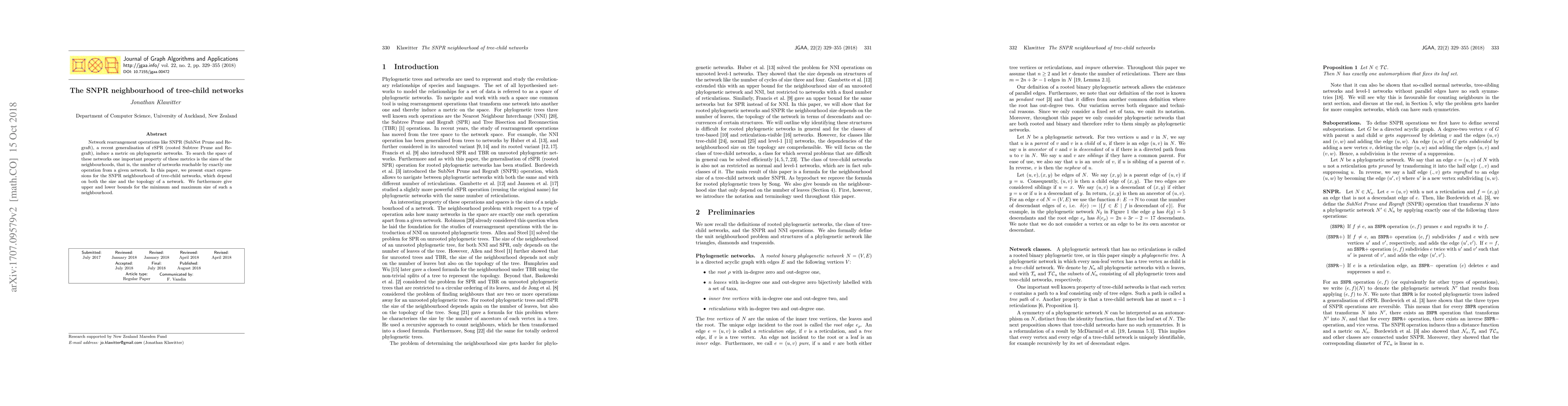 Researchers found exact expressions for the size of SNPR neighbourhoods in tree-child networks, providing bounds for minimum and maximum sizes, which depend on network topology.
