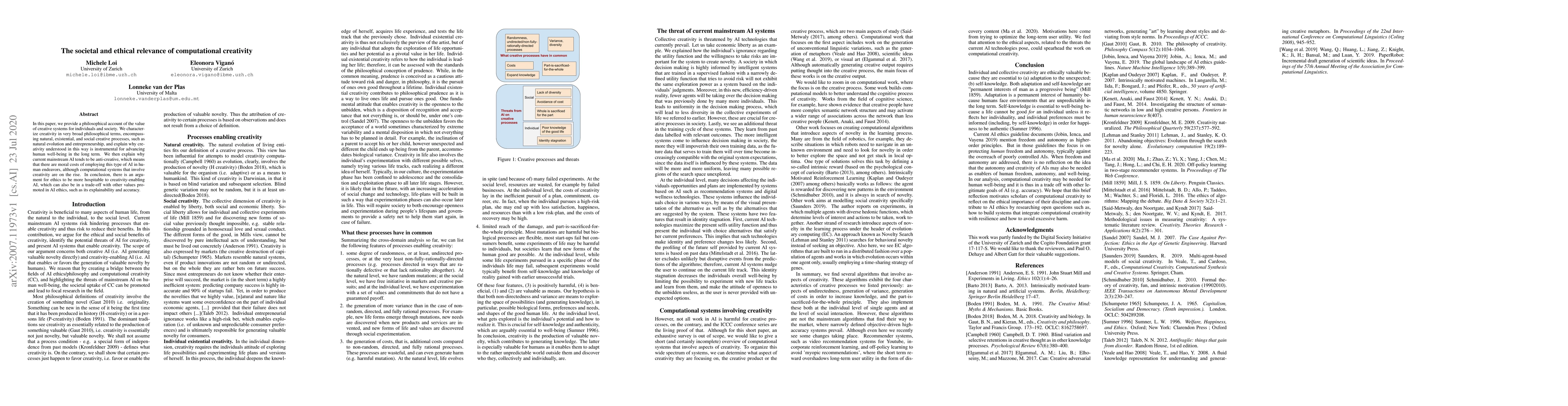 This paper explores the philosophical significance of computational creativity, arguing that it is essential for long-term human well-being, while mainstream AI often lacks this creative aspect, leading to moral costs. It concludes that ethics should embrace creativity-enabling AI, despite potential trade-offs with other AI values like explainability and accuracy.