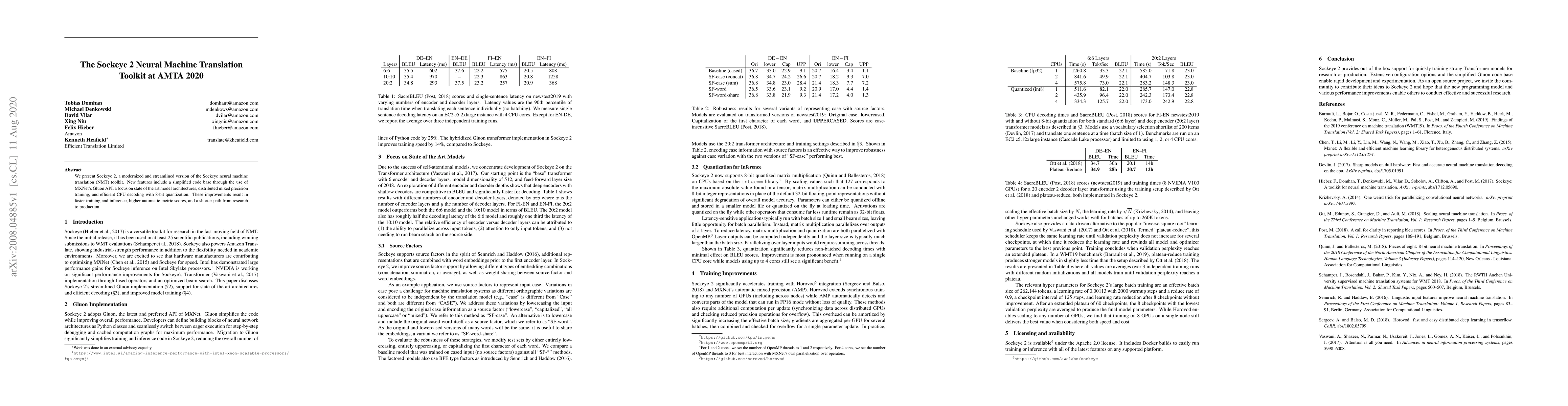 Sockeye 2 is an updated neural machine translation toolkit featuring a simplified codebase, state-of-the-art model architectures, and efficient training and decoding methods, leading to faster performance and better metric scores.
