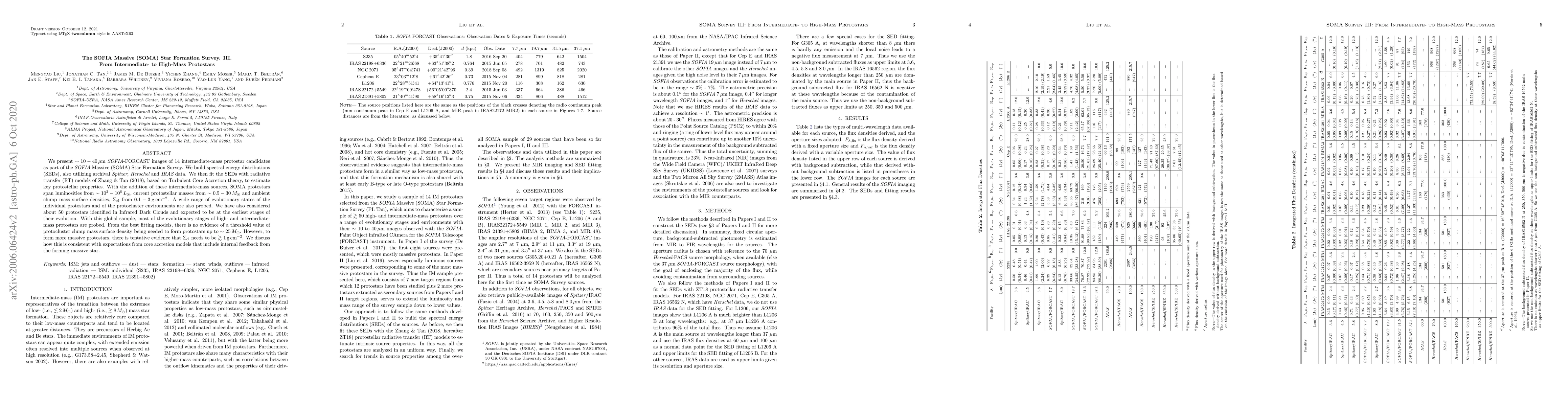 We present $\sim10-40\,\mu$m SOFIA-FORCAST images of 14 intermediate-mass protostar candidates as part of the SOFIA Massive (SOMA) Star Formation Survey. We build spectral energy distributions (SEDs), also utilizing archival Spitzer, Herschel and IRAS data. We then fit the SEDs with radiative transfer (RT) models of Zhang & Tan (2018), based on Turbulent Core Accretion theory, to estimate key protostellar properties. With the addition of these intermediate-mass sources, SOMA protostars span luminosities from $\sim10^{2}-10^{6}\:L_{\odot}$, current protostellar masses from $\sim0.5-30\:M_{\odot}$ and ambient clump mass surface densities, $\Sigma_{\rm cl}$ from $0.1-3\:{\rm{g\:cm}^{-2}}$. A wide range of evolutionary states of the individual protostars and of the protocluster environments are also probed. We have also considered about 50 protostars identified in Infrared Dark Clouds and expected to be at the earliest stages of their evolution. With this global sample, most of the evolutionary stages of high- and intermediate-mass protostars are probed. From the best fitting models, there is no evidence of a threshold value of protocluster clump mass surface density being needed to form protostars up to $\sim25\:M_\odot$. However, to form more massive protostars, there is tentative evidence that $\Sigma_{\rm{cl}}$ needs to be $\gtrsim1\:{\rm{g\,cm}}^{-2}$. We discuss how this is consistent with expectations from core accretion models that include internal feedback from the forming massive star.