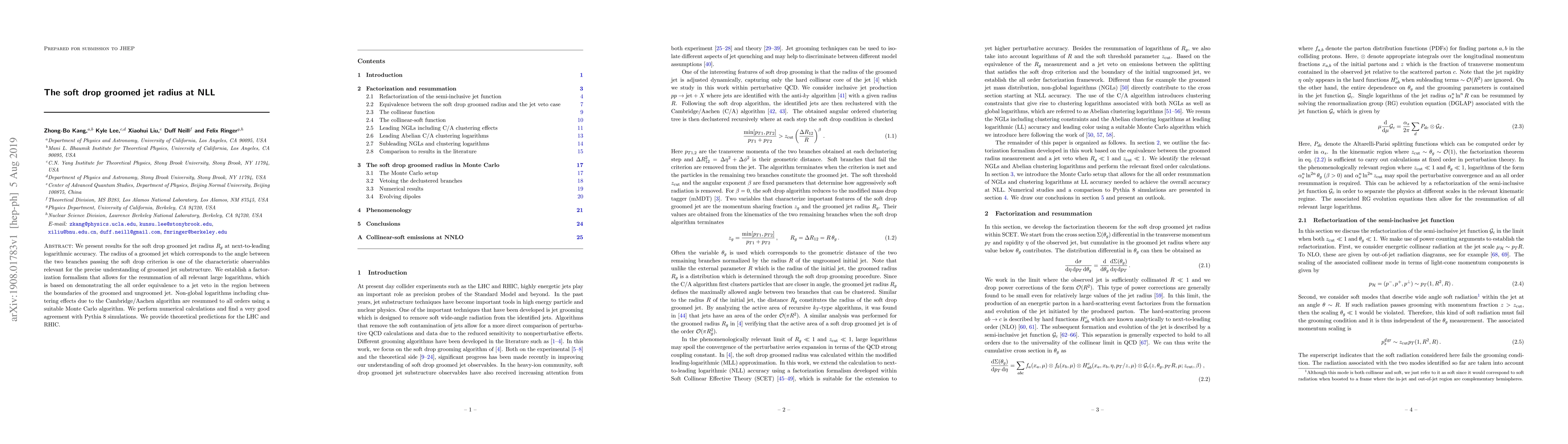 This paper presents next-to-leading logarithmic accuracy results for the soft drop groomed jet radius $R_g$, establishing a factorization formalism that resums large logarithms. Numerical calculations show strong agreement with Pythia 8 simulations and provide predictions for LHC and RHIC.