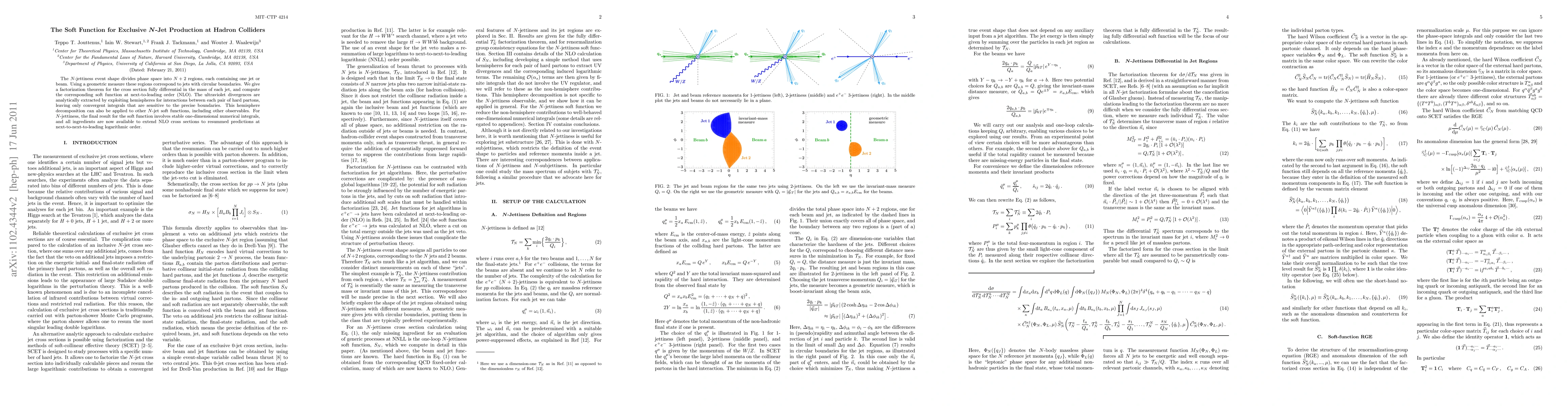 This paper presents a factorization theorem for exclusive N-jet production at hadron colliders, computing the soft function at next-to-leading order. The method analytically extracts ultraviolet divergences, enabling stable numerical integration for resummed predictions at next-to-next-to-leading logarithmic order.