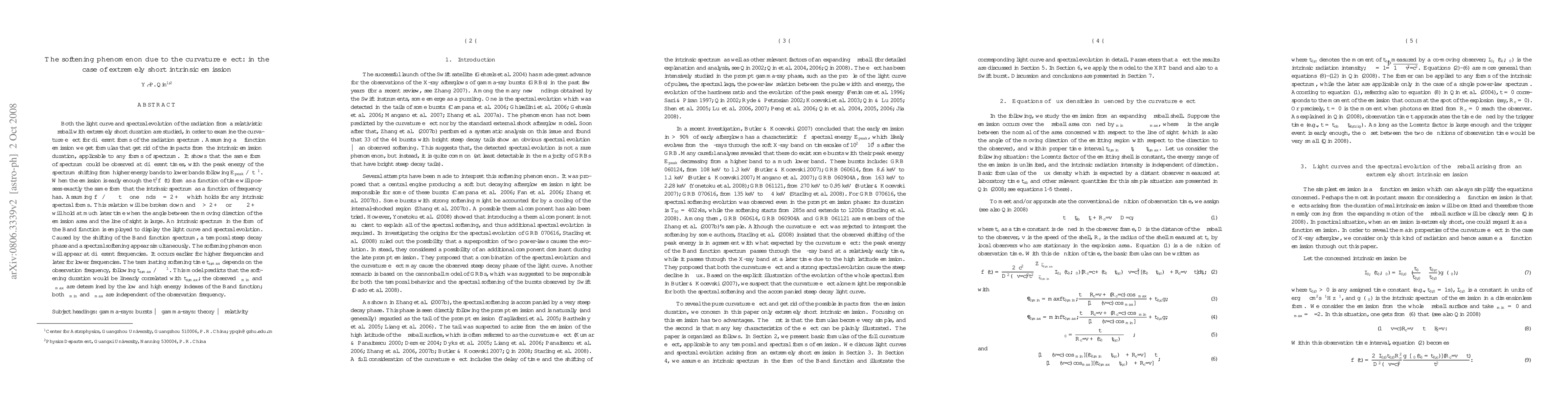 The curvature effect is explored in the case of extremely short intrinsic emission. Assuming a $\delta$ function emission we get formulas that get rid of the impacts from the intrinsic emission duration, which are applicable to any forms of continuum. The formulas predict that the same form of spectrum could be observed at different times, with the peak energy of the spectrum shifting from higher energy bands to lower bands following $E_{peak}\propto t^{-1}$. When the emission is early enough the light curve in the form $f_{\nu }(t)t^{2}$ will possess exactly the intrinsic spectral form, for which the temporal power law index and the spectral power law index will be related by $\alpha =2+\beta $. The analysis shows that there do exist a temporal steep decay phase and a spectral softening which occur simultaneously, and both are caused by the shifting of the Band function spectrum. According to the analysis, we predict that the softening due to the curvature effect will appear at different frequencies; it occurs earlier for higher frequencies and later for lower frequencies; the maximum spectral index time follows the $t_{b,max}\propto \nu^{-1}$ law. We also find: the softening duration would be linearly correlated with the maximum spectral index time; the observed $\beta_{min}$ and $\beta_{max}$ are determined by the low and high energy indexes of the observed Band function spectrum. We propose to check the curvature effect with the $\log f_{\nu}(t)t^{3}$ vs. $log t$ curve which would be in agreement with the $\log \nu f_{\nu}$ vs. $log \nu$ curve. Applying this to GRB 060614 shows that the peak energy of its observed spectrum is expected to pass through the observation band at $\sim $175 s.