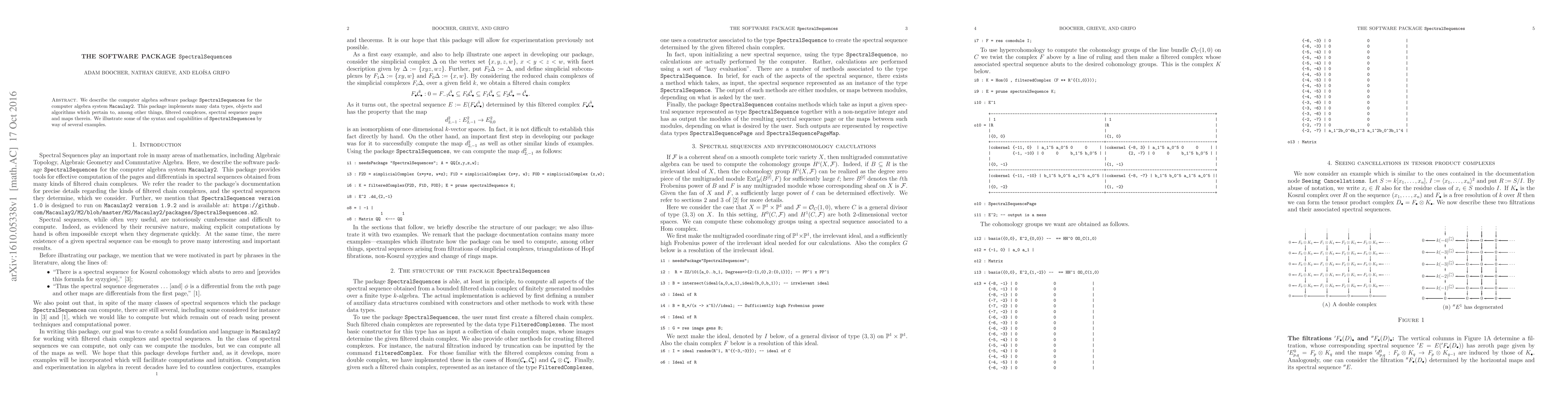 We describe the computer algebra software package SpectralSequences for the computer algebra system Macaulay2. This package implements many data types, objects and algorithms which pertain to, among other things, filtered complexes, spectral sequence pages and maps therein. We illustrate some of the syntax and capabilities of SpectralSequences by way of several examples.