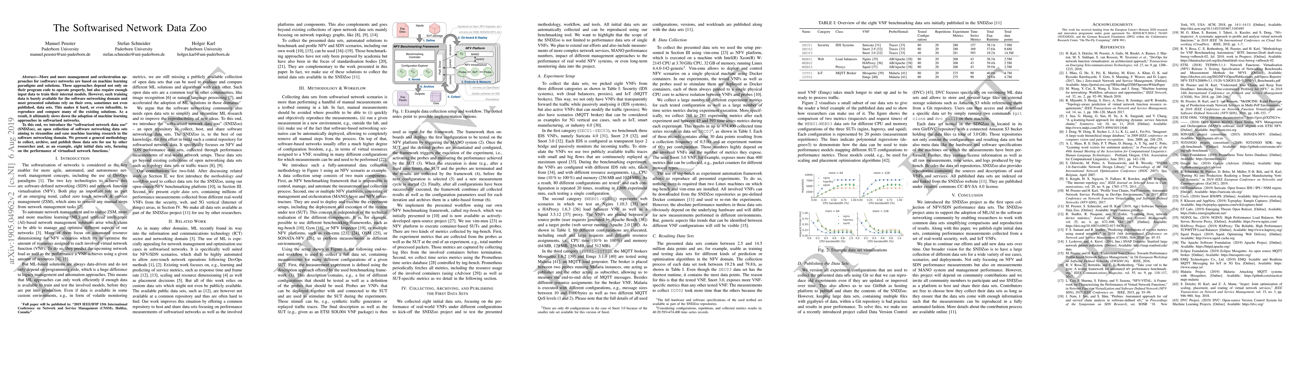 The "softwarised network data zoo" (SNDZoo) aims to provide an open collection of software networking datasets to facilitate machine learning research in this domain. The initiative addresses the lack of publicly available training data, thereby promoting reproducibility and comparison of existing solutions.
