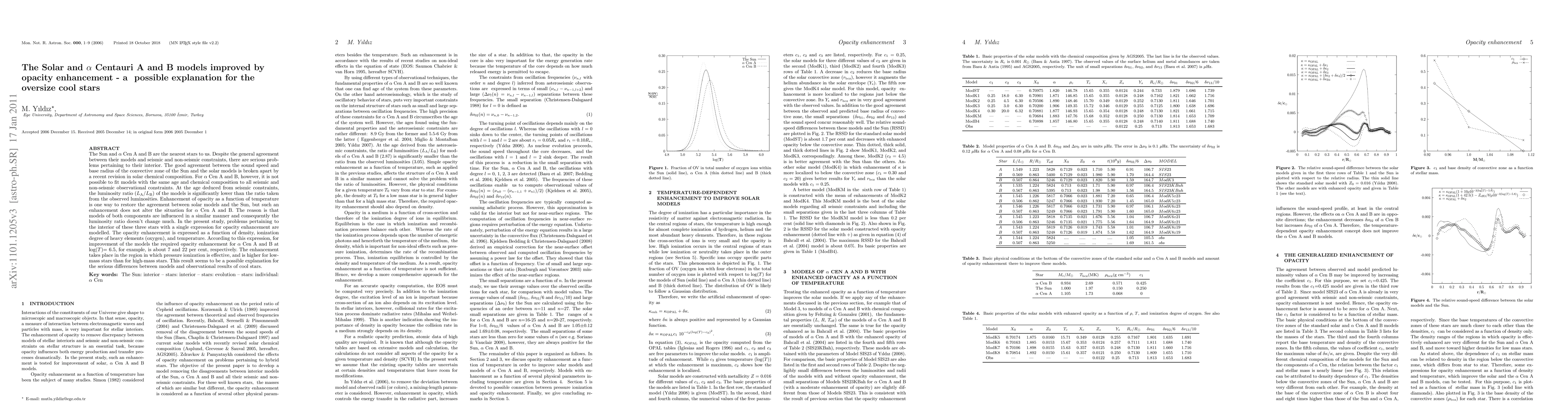 The Sun and $\alpha$ Cen A and B are the nearest stars to us. Despite the general agreement between their models and seismic and non-seismic constraints, there are serious problems pertaining to their interior. The good agreement between the sound speed and base radius of the convective zone of the Sun and the solar models is broken apart by a recent revision in solar chemical composition. For $\alpha$ Cen A and B, however, it is not possible to fit models with the same age and chemical composition to all seismic and non-seismic observational constraints. At the age deduced from seismic constraints, the luminosity ratio ($L_{\rm A}/L_{\rm B}$) of the models is significantly lower than the ratio taken from the observed luminosities. Enhancement of opacity as a function of temperature is one way to restore the agreement between solar models and the Sun, but such an enhancement does not alter the situation for $\alpha$ Cen A and B. The reason is that models of both components are influenced in a similar manner and consequently the luminosity ratio doesn't change much. In the present study, problems pertaining to the interior of these three stars with a single expression for opacity enhancement are modelled. The opacity enhancement is expressed as a function of density, ionization degree of heavy elements (oxygen), and temperature. According to this expression, for improvement of the models the required opacity enhancement for $\alpha$ Cen A and B at $\log(T)$= 6.5, for example, is about 7 and 22 per cent, respectively. The enhancement tak es place in the region in which pressure ionization is effective, and is higher for low-mass stars than for high-mass stars. This result seems to be a possible explanation for the serious differences between models and observational results of cool stars.