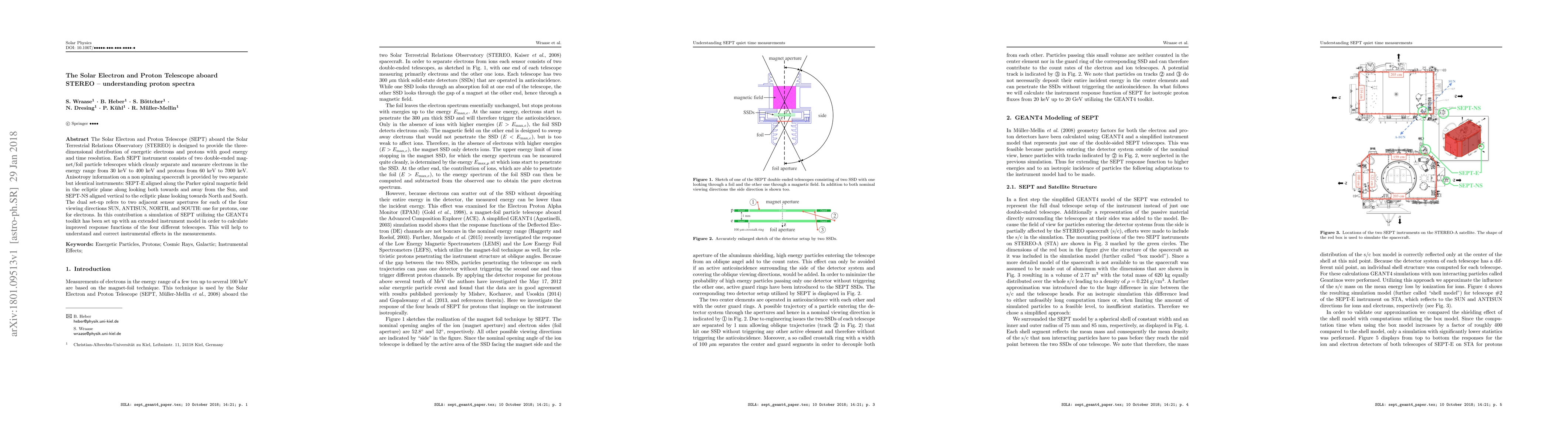 The Solar Electron and Proton Telescope (SEPT) aboard the STEREO mission measures energetic electrons and protons, with SEPT-E and SEPT-NS providing anisotropy data. A GEANT4 simulation has been developed to improve the understanding of SEPT's response functions and correct for instrumental effects in proton spectrum measurements.