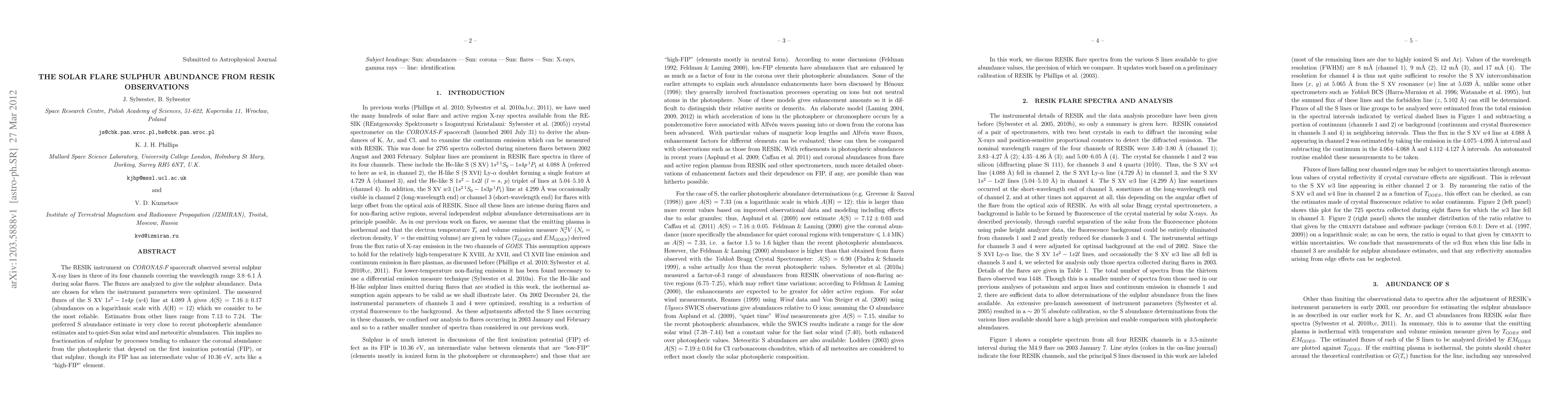 The RESIK instrument on the CORONAS-F spacecraft measured sulphur abundance during solar flares, finding the most reliable estimate of $A({\rm S}) = 7.16 \pm 0.17$. This value closely matches recent photospheric and meteoritic abundances, suggesting no significant fractionation by coronal processes.