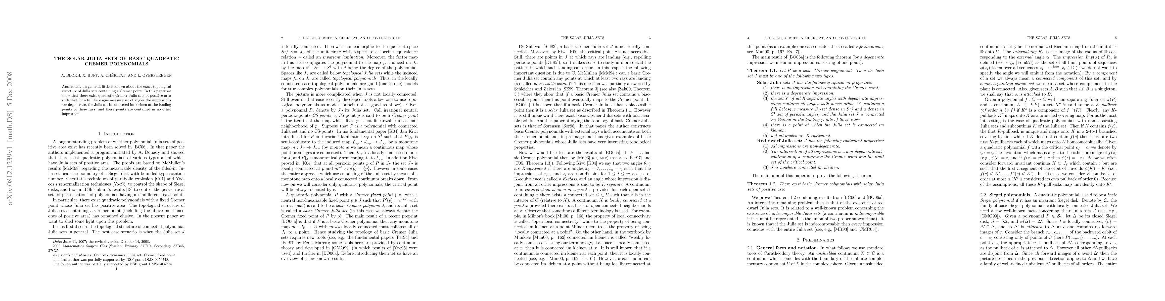 This paper demonstrates the existence of quadratic Cremer Julia sets with positive area where, for a significant angle range, the impressions are degenerate, the Julia set remains connected at small scales at the landing points, and these points do not belong to any other impression.