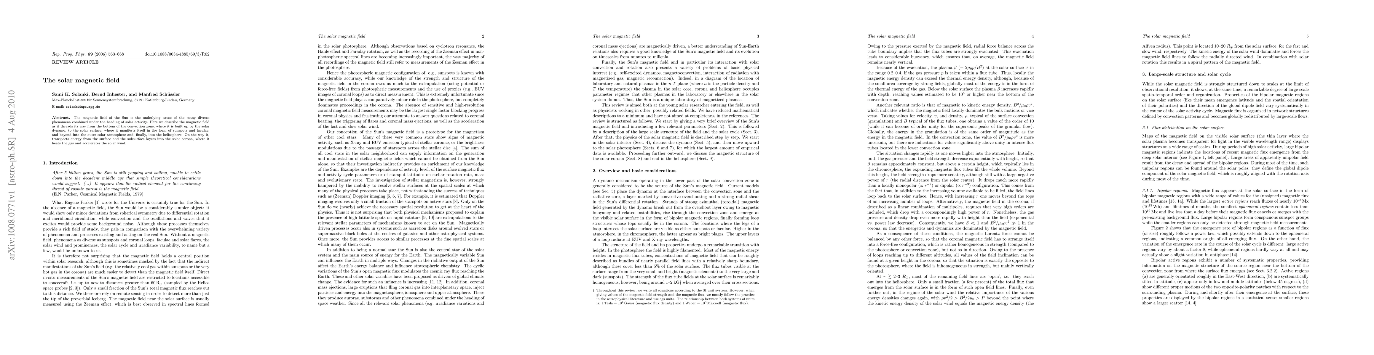 The solar magnetic field, originating in the convection zone and extending to the heliosphere, drives solar activity, transporting energy to heat the corona and accelerate the solar wind, as described in this research paper.