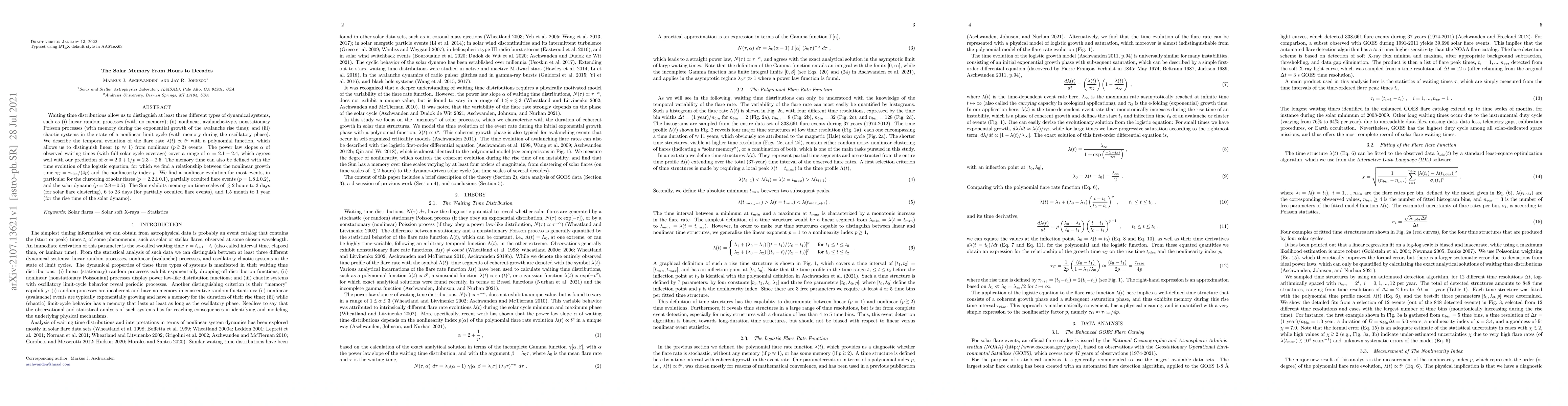 This research identifies three types of dynamical systems in solar activity using waiting time distributions. It introduces a polynomial function to describe flare rate temporal evolution, distinguishing linear from nonlinear events. The study finds solar memory on varying time scales, from hours to decades, supported by power law slope observations matching predictions.