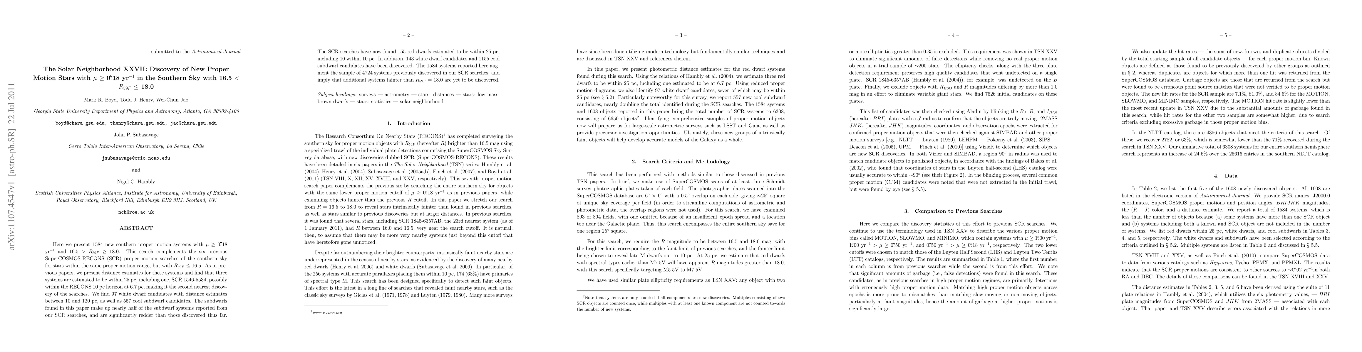 This paper reports 1584 new proper motion stars in the southern sky with high proper motion (μ > 0.18 "/yr) and fainter magnitudes (16.5 > R_59F > 18.0), expanding the SuperCOSMOS-RECONS survey. Among these, three systems are within 25 pc, including one potentially within 10 pc, and 97 white dwarf candidates were identified.