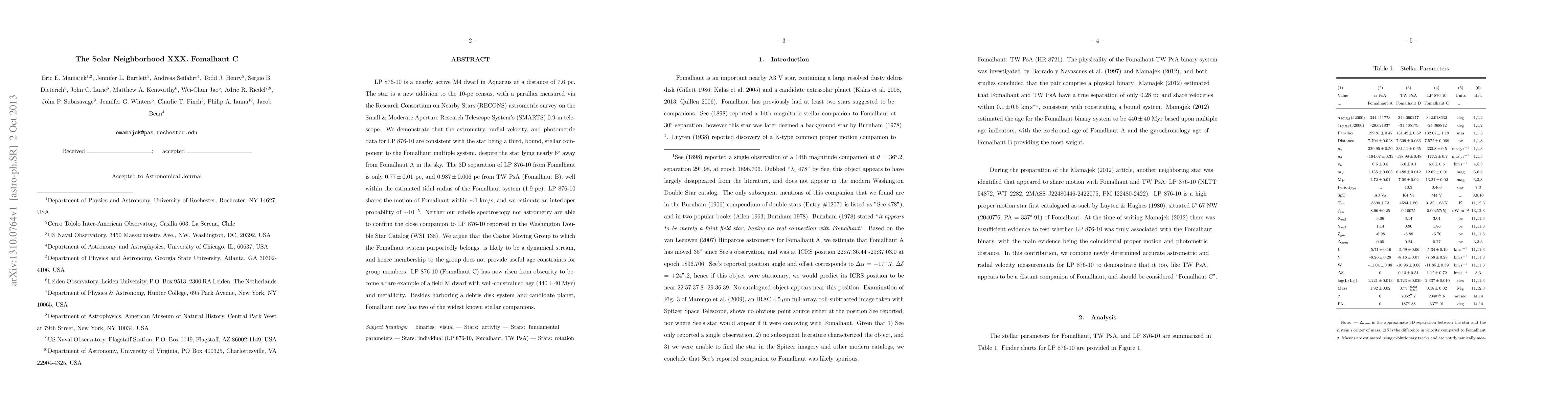 LP 876-10 is a nearby active M4 dwarf in Aquarius at a distance of 7.6 pc. The star is a new addition to the 10-pc census, with a parallax measured via the Research Consortium on Nearby Stars (RECONS) astrometric survey on the Small & Moderate Aperture Research Telescope System's (SMARTS) 0.9-m telescope. We demonstrate that the astrometry, radial velocity, and photometric data for LP 876-10 are consistent with the star being a third, bound, stellar component to the Fomalhaut multiple system, despite the star lying nearly 6 degrees away from Fomalhaut A in the sky. The 3D separation of LP 876-10 from Fomalhaut is only 0.77+-0.01 pc, and 0.987+-0.006 pc from TW PsA (Fomalhaut B), well within the estimated tidal radius of the Fomalhaut system (1.9 pc). LP 876-10 shares the motion of Fomalhaut within ~1 km/s, and we estimate an interloper probability of ~10^{-5}. Neither our echelle spectroscopy nor astrometry are able to confirm the close companion to LP 876-10 reported in the Washington Double Star Catalog (WSI 138). We argue that the Castor Moving Group to which the Fomalhaut system purportedly belongs, is likely to be a dynamical stream, and hence membership to the group does not provide useful age constraints for group members. LP 876-10 (Fomalhaut C) has now risen from obscurity to become a rare example of a field M dwarf with well-constrained age (440+-40 Myr) and metallicity. Besides harboring a debris disk system and candidate planet, Fomalhaut now has two of the widest known stellar companions.