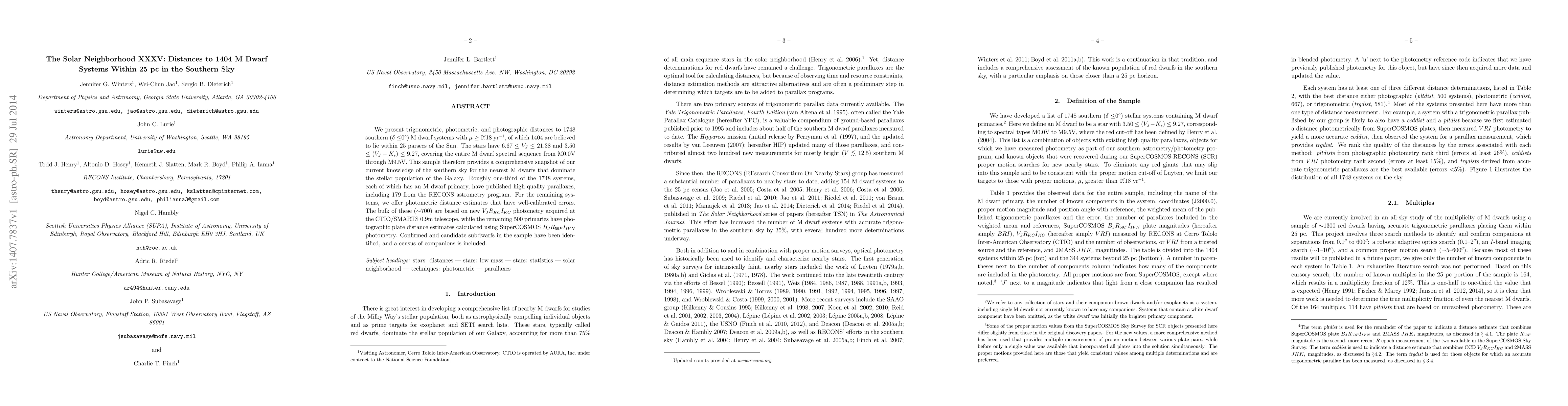 This study presents distances to 1748 southern M dwarf systems, with 1404 located within 25 parsecs of the Sun, using trigonometric, photometric, and photographic methods. It provides a comprehensive snapshot of the nearest M dwarfs, including those with high-quality parallaxes and calibrated photometric distance estimates.