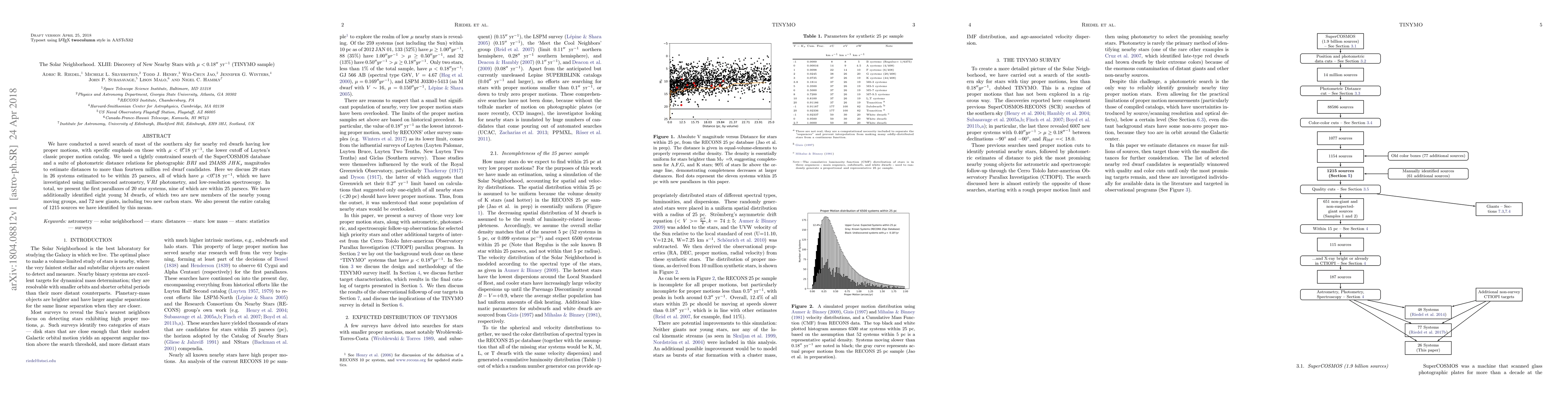 We have conducted a novel search of most of the southern sky for nearby red dwarfs having low proper motions, with specific emphasis on those with proper motion < 0.18 arcsec yr-1, the lower cutoff of Luyten's classic proper motion catalog. We used a tightly constrained search of the SuperCOSMOS database and a suite of photometric distance relations for photographic BRI and 2MASS JHKs magnitudes to estimate distances to more than fourteen million red dwarf candidates. Here we discuss 29 stars in 26 systems estimated to be within 25 parsecs, all of which have pm < 0.18 arcsec yr-1, which we have investigated using milliarcsecond astrometry, VRI photometry, and low-resolution spectroscopy. In total, we present the first parallaxes of 20 star systems, nine of which are within 25 parsecs. We have additionally identified eight young M dwarfs, of which two are new members of the nearby young moving groups, and 72 new giants, including two new carbon stars. We also present the entire catalog of 1215 sources we have identified by this means.