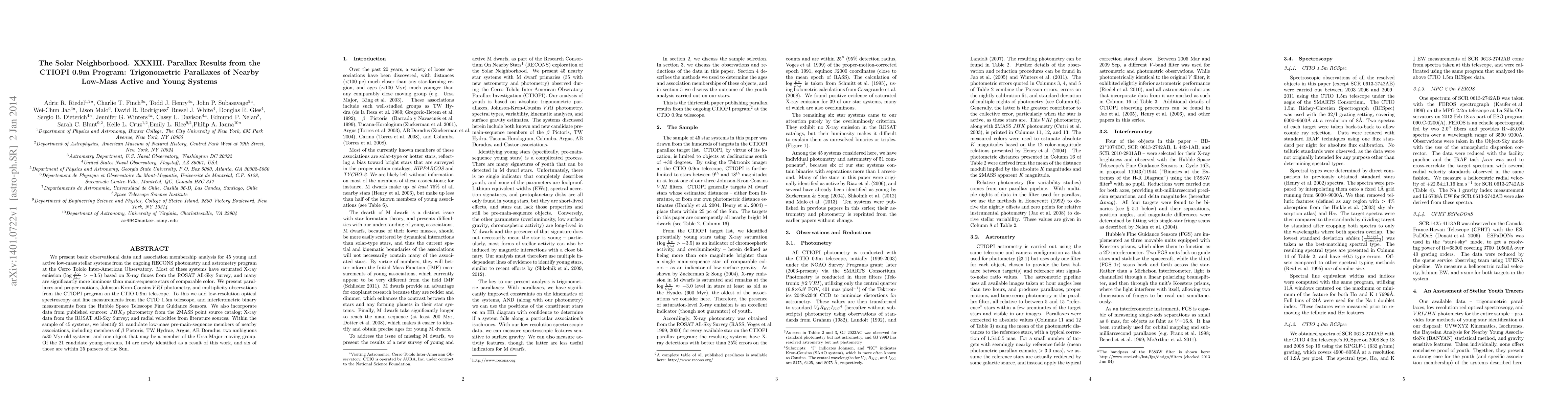 We present basic observational data and association membership analysis for 45 young and active low-mass stellar systems from the ongoing RECONS photometry and astrometry program at the Cerro Tololo Inter-American Observatory. Most of these systems have saturated X-ray emission (log(Lx/Lbol) > -3.5) based on X-ray fluxes from the ROSAT All-Sky Survey, and many are significantly more luminous than main-sequence stars of comparable color. We present parallaxes and proper motions, Johnson-Kron-Cousins VRI photometry, and multiplicity observations from the CTIOPI program on the CTIO 0.9m telescope. To this we add low-resolution optical spectroscopy and line measurements from the CTIO 1.5m telescope, and interferometric binary measurements from the Hubble Space Telescope Fine Guidance Sensors. We also incorporate data from published sources: JHKs photometry from the 2MASS point source catalog; X-ray data from the ROSAT All-Sky Survey; and radial velocities from literature sources. Within the sample of 45 systems, we identify 21 candidate low-mass pre-main-sequence members of nearby associations, including members of beta Pictoris, TW Hydrae, Argus, AB Doradus, two ambiguous 30 Myr old systems, and one object that may be a member of the Ursa Major moving group. Of the 21 candidate young systems, 14 are newly identified as a result of this work, and six of those are within 25 parsecs of the Sun.