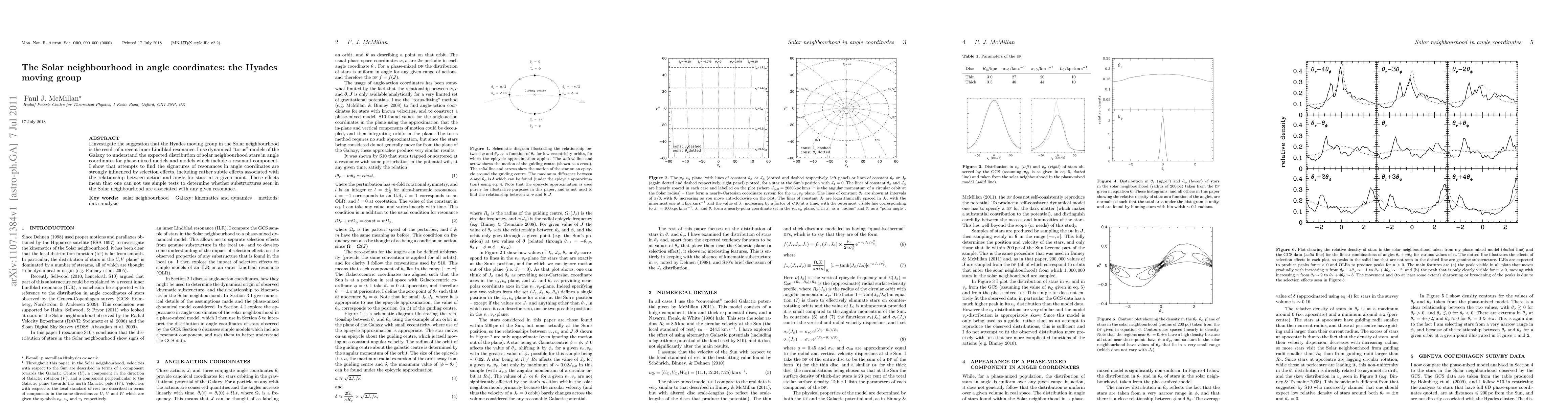 I investigate the suggestion that the Hyades moving group in the Solar neighbourhood is the result of a recent inner Lindblad resonance. I use dynamical "torus" models of the Galaxy to understand the expected distribution of solar neighbourhood stars in angle coordinates for phase-mixed models and models which include a resonant component. I show that attempts to find the signatures of resonances in angle coordinates are strongly influenced by selection effects, including rather subtle effects associated with the relationship between action and angle for stars at a given point. These effects mean that one can not use simple tests to determine whether substructures seen in the Solar neighbourhood are associated with any given resonance.