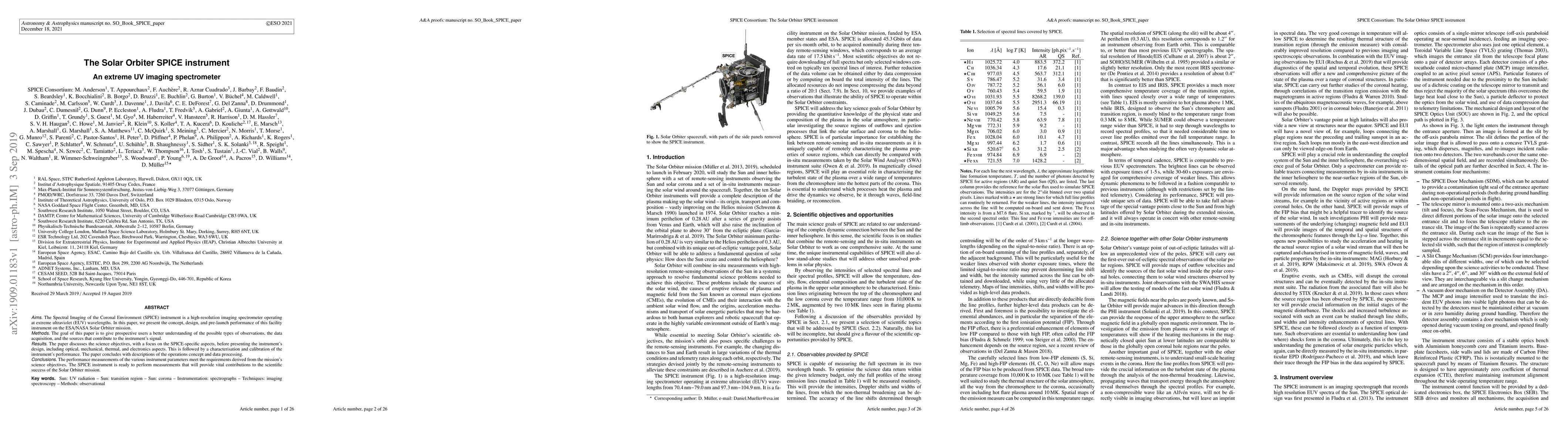 This paper details the design, pre-launch performance, and science objectives of the SPICE instrument on the Solar Orbiter mission, focusing on its extreme UV imaging capabilities. The SPICE instrument is poised to deliver vital data for understanding the coronal environment, with its performance meeting mission requirements.