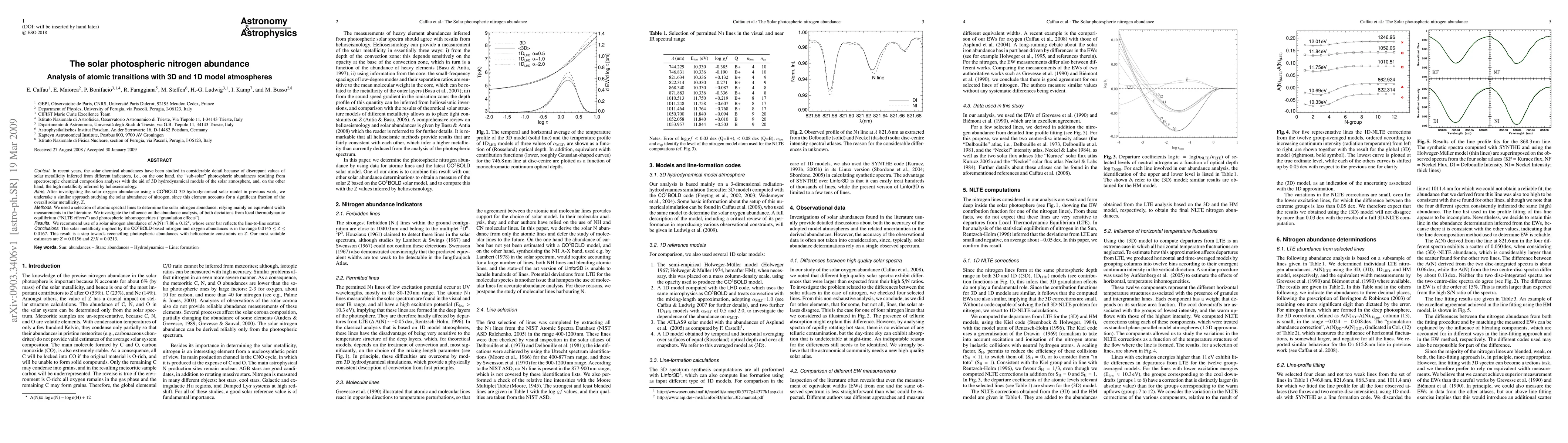 The paper presents a comprehensive analysis of nitrogen abundance in the solar photosphere using both 3D hydrodynamical and 1D model atmospheres, accounting for NLTE and granulation effects.