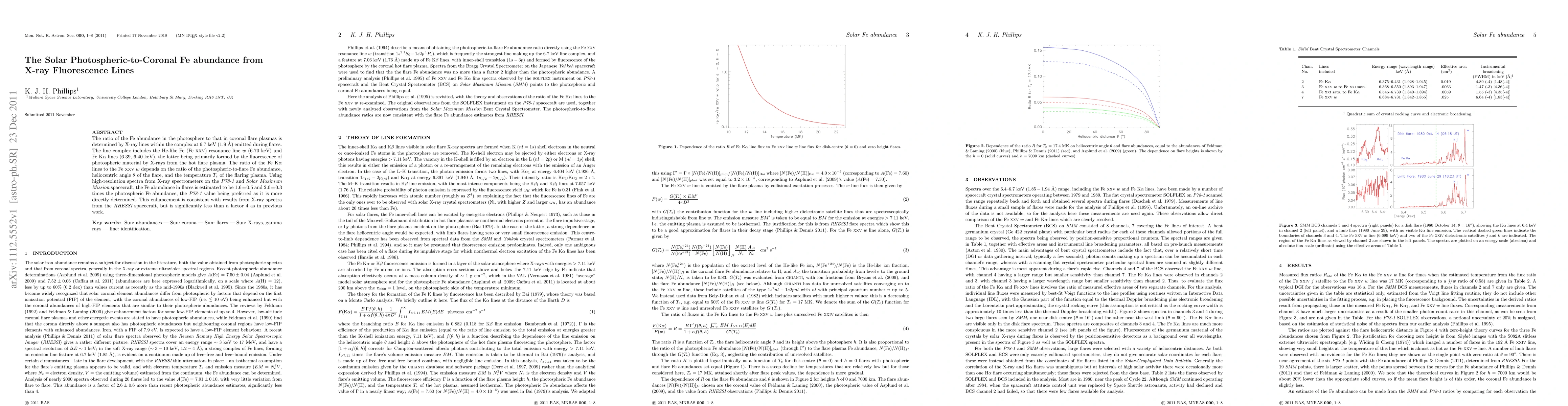 This paper determines the Fe abundance ratio in solar coronal flare plasmas compared to the solar photosphere using X-ray fluorescence lines. The study finds that the Fe abundance in flares is 1.6±0.5 times the photospheric abundance, a value less than previous estimates of a factor 4.