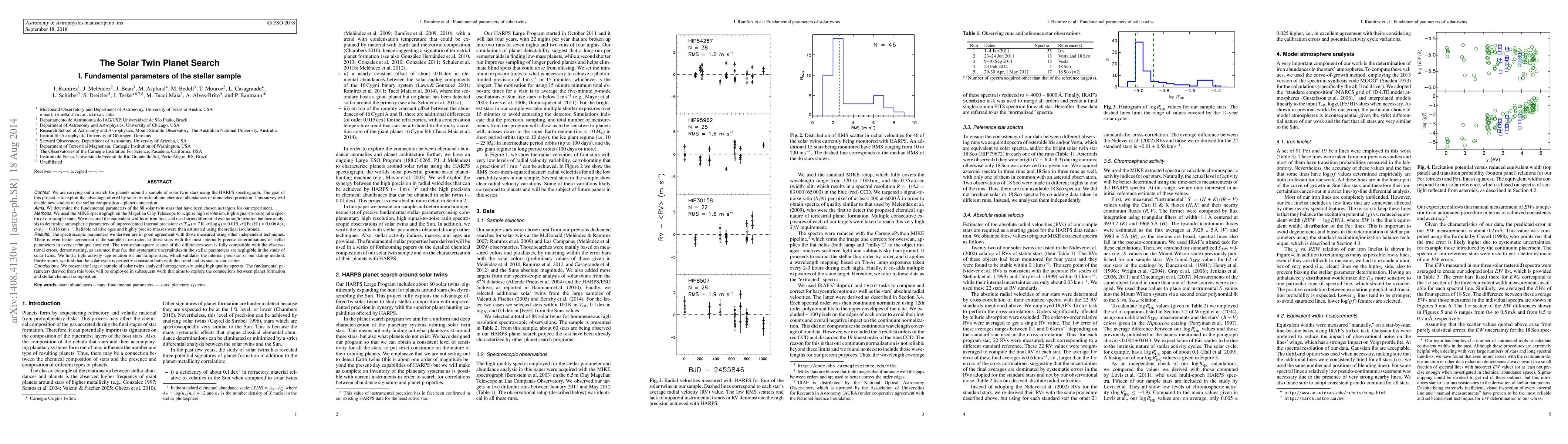 We are carrying out a search for planets around a sample of solar twin stars using the HARPS spectrograph. The goal of this project is to exploit the advantage offered by solar twins to obtain chemical abundances of unmatched precision. This survey will enable new studies of the stellar composition -- planet connection. Here we used the MIKE spectrograph on the Magellan Clay Telescope to acquire high resolution, high signal-to-noise ratio spectra of our sample stars. We measured the equivalent widths of iron lines and used strict differential excitation/ionization balance analysis to determine atmospheric parameters of unprecedented internal precision (DTeff=7K, Dlogg=0.019, D[Fe/H]=0.006dex, Dvt=0.016km/s). Reliable relative ages and highly precise masses were then estimated using theoretical isochrones. The spectroscopic parameters we derived are in good agreement with those measured using other independent techniques. The root-mean-square scatter of the differences seen is fully compatible with the observational errors, demonstrating, as assumed thus far, that systematic uncertainties in the stellar parameters are negligible in the study of solar twins. We find a tight activity-age relation for our sample stars, which validates the internal precision of our dating method. Furthermore, we find that the solar cycle is perfectly consistent both with this trend and its star-to-star scatter. We present the largest sample of solar twins analyzed homogeneously using high quality spectra. The fundamental parameters derived from this work will be employed in subsequent work that aims to explore the connections between planet formation and stellar chemical composition.