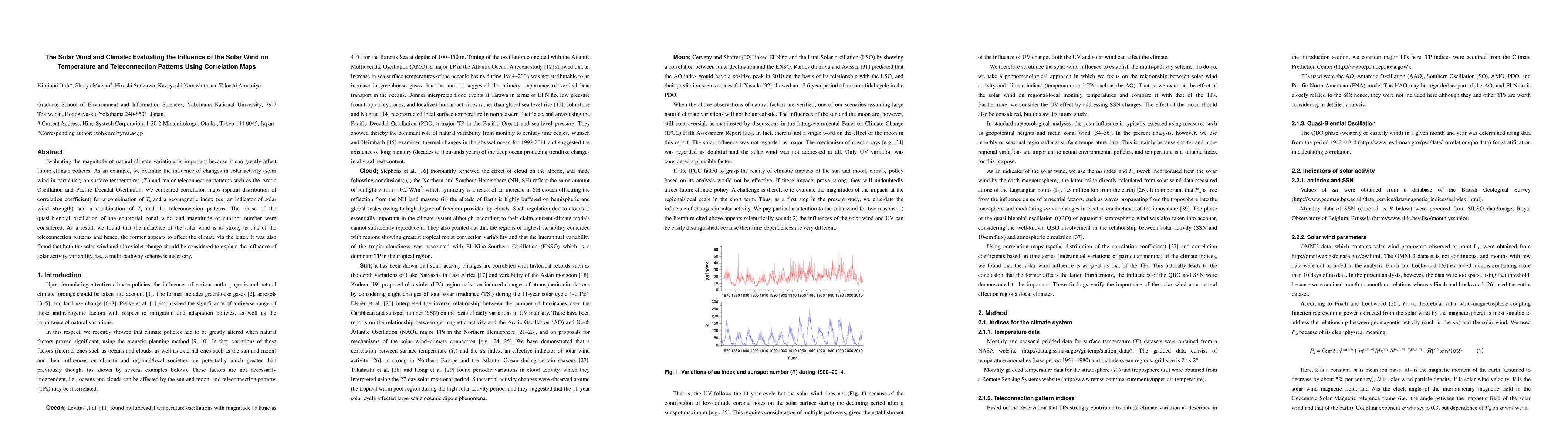 Evaluating the magnitude of natural climate variations is important because it can greatly affect future climate policies. As an example, we examine the influence of changes in solar activity (solar wind in particular) on surface temperatures (Ts) and major teleconnection patterns such as the Arctic Oscillation and Pacific Decadal Oscillation. We compared correlation maps (spatial distribution of correlation coefficient) for a combination of Ts and a geomagnetic index (aa, an indicator of solar wind strength) and a combination of Ts and the teleconnection patterns. The phase of the quasi-biennial oscillation of the equatorial zonal wind and magnitude of sunspot number were considered. As a result, we found that the influence of the solar wind is as strong as that of the teleconnection patterns and hence, the former appears to affect the climate via the latter. It was also found that both the solar wind and ultraviolet change should be considered to explain the influence of solar activity variability, i.e., a multi-pathway scheme is necessary.