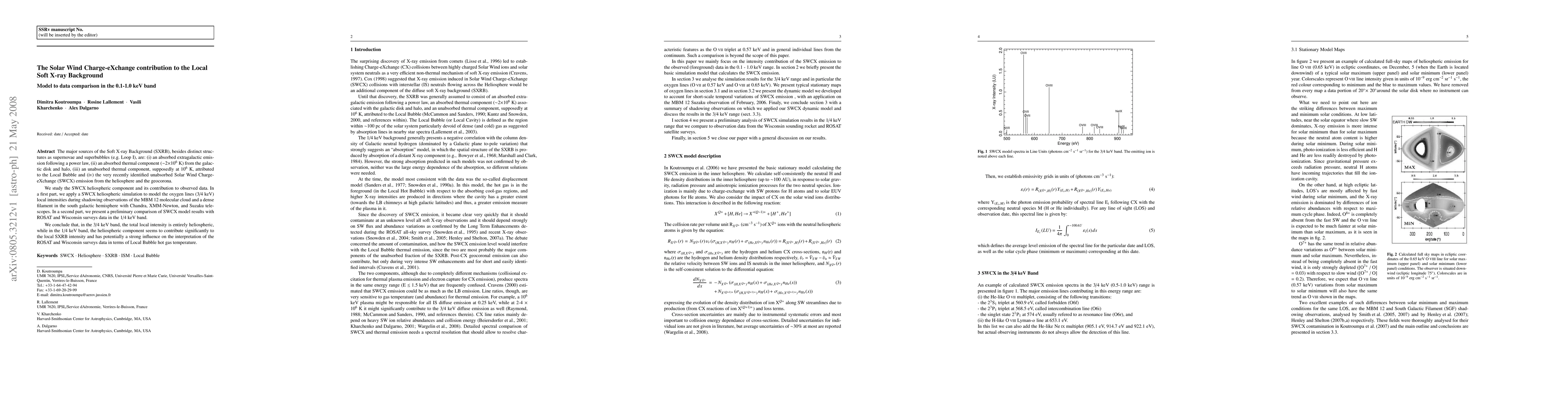 The major sources of the Soft X-ray Background (SXRB), besides distinct structures as supernovae and superbubbles (e.g. Loop I), are: (i) an absorbed extragalactic emission following a power law, (ii) an absorbed thermal component ~2x10^6 K) from the galactic disk and halo, (iii) an unabsorbed thermal component, supposedly at 10^6 K, attributed to the Local Bubble and (iv) the very recently identified unabsorbed Solar Wind Charge-eXchange (SWCX) emission from the heliosphere and the geocorona. We study the SWCX heliospheric component and its contribution to observed data. In a first part, we apply a SWCX heliospheric simulation to model the oxygen lines (3/4 keV) local intensities during shadowing observations of the MBM12 molecular cloud and a dense filament in the south galactic hemisphere with Chandra, XMM-Newton, and Suzaku telescopes. In a second part, we present a preliminary comparison of SWCX model results with ROSAT and Wisconsin surveys data in the 1/4 keV band. We conclude that, in the 3/4 keV band, the total local intensity is entirely heliospheric, while in the 1/4 keV band, the heliospheric component seems to contribute significantly to the local SXRB intensity and has potentially a strong influence on the interpretation of the ROSAT and Wisconsin surveys data in terms of Local Bubble hot gas temperature.