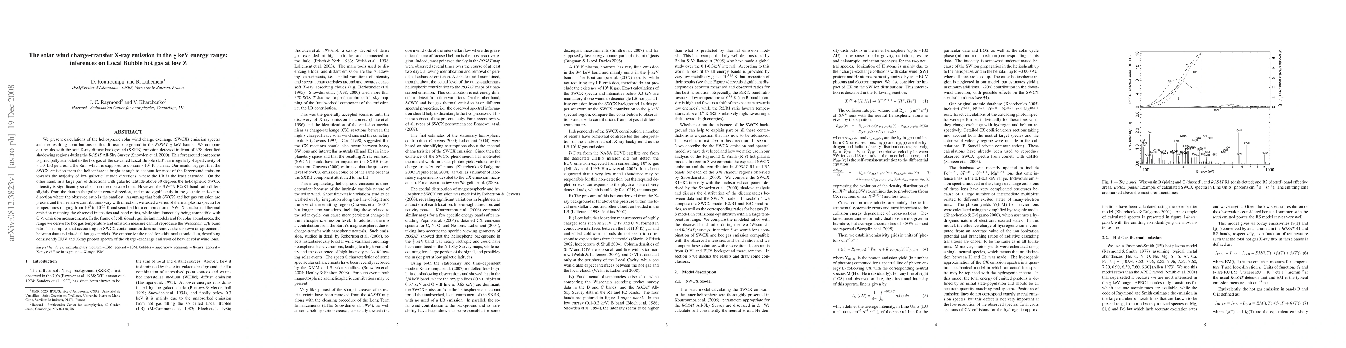 We present calculations of the heliospheric SWCX emission spectra and their contributions in the ROSAT 1/4 keV band. We compare our results with the soft X-ray diffuse background (SXRB) emission detected in front of 378 identified shadowing regions during the ROSAT All-Sky Survey (Snowden et al. 2000). This foreground component is principally attributed to the hot gas of the so-called Local Bubble (LB), an irregularly shaped cavity of ~50-150 pc around the Sun, which is supposed to contain ~10^6 K plasma. Our results suggest that the SWCX emission from the heliosphere is bright enough to account for most of the foreground emission towards the majority of low galactic latitude directions, where the LB is the least extended. In a large part of directions with galactic latitude above 30deg the heliospheric SWCX intensity is significantly smaller than the measured one. However, the SWCX R2/R1 band ratio differs slightly from the data in the galactic center direction, and more significantly in the galactic anti-centre direction where the observed ratio is the smallest. Assuming that both SWCX and hot gas emission are present and their relative contributions vary with direction, we tested a series of thermal plasma spectra for temperatures ranging from 10^5 to 10^6.5 K and searched for a combination of SWCX spectra and thermal emission matching the observed intensities and band ratios, while simultaneously being compatible with O VI emission measurements. In the frame of collisional equilibrium models and for solar abundances, the range we derive for hot gas temperature and emission measure cannot reproduce the Wisconsin C/B band ratio. We emphasize the need for additional atomic data, describing consistently EUV and X-ray photon spectra of the charge-exchange emission of heavier solar wind ions.