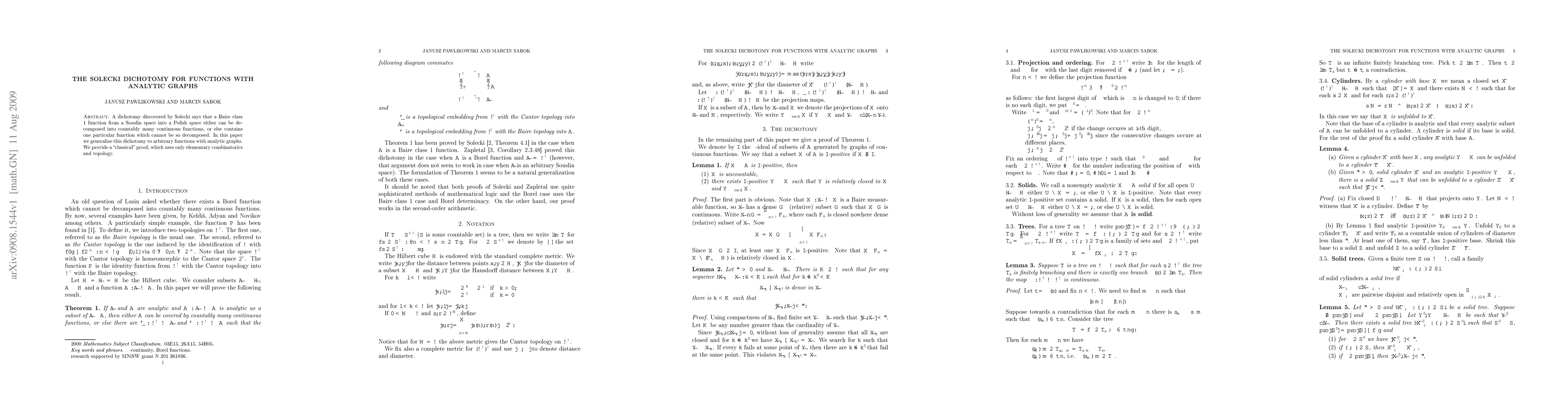 This paper generalizes Solecki's dichotomy to arbitrary functions with analytic graphs, proving a dichotomy using elementary combinatorics and topology that either decomposes the function into countably many continuous parts or contains an indivisible part.