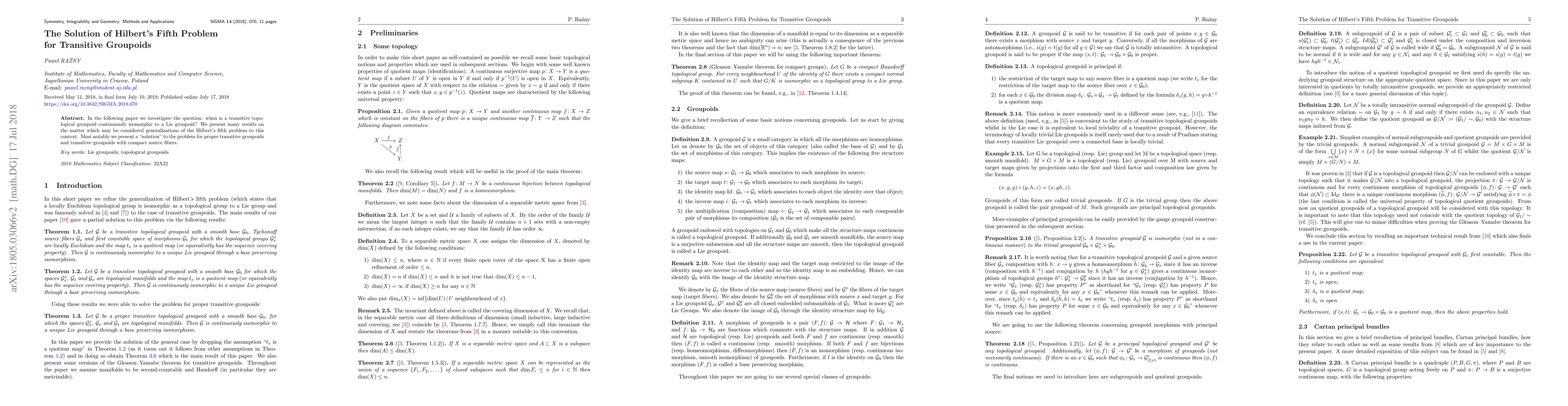 This paper explores the conditions under which a transitive topological groupoid can be continuously isomorphic to a Lie groupoid, extending Hilbert's fifth problem to this context. The authors provide a solution for proper transitive groupoids and those with compact source fibers.