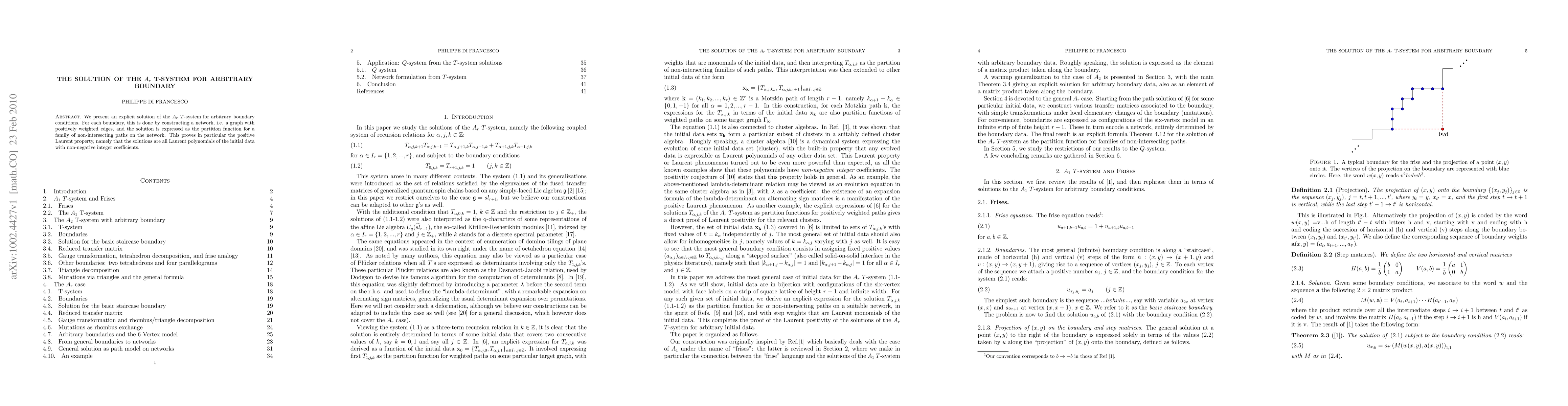 We present an explicit solution of the $A_r$ $T$-system for arbitrary boundary conditions. For each boundary, this is done by constructing a network, i.e. a graph with positively weighted edges, and the solution is expressed as the partition function for a family of non-intersecting paths on the network. This proves in particular the positive Laurent property, namely that the solutions are all Laurent polynomials of the initial data with non-negative integer coefficients.