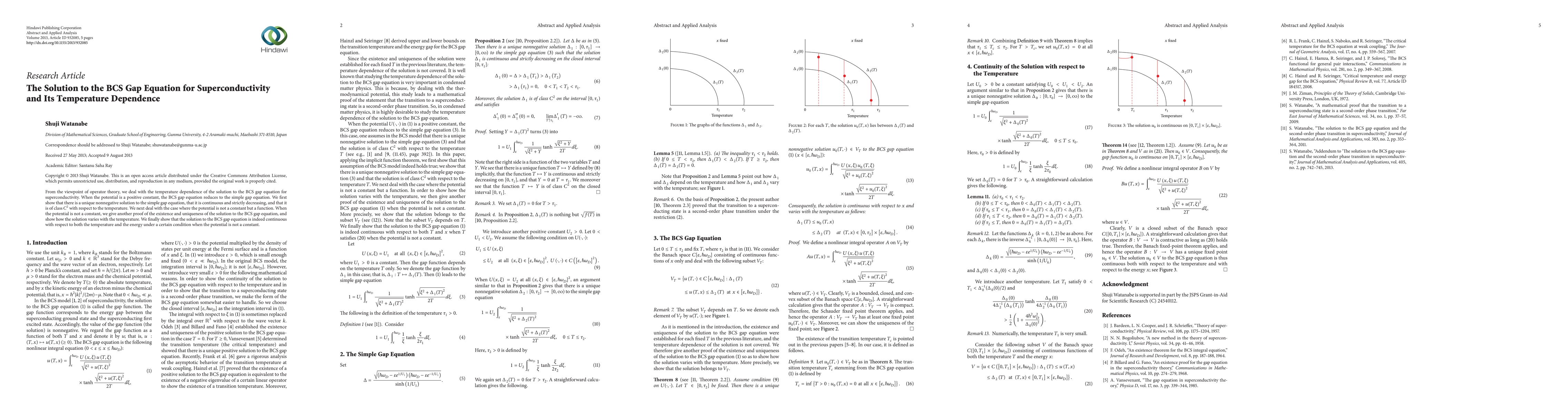This paper investigates the temperature dependence of the BCS gap equation for superconductivity, proving the existence and uniqueness of a nonnegative solution that is continuous and strictly decreasing. It also examines cases where the potential is not constant, providing further proof and demonstrating the continuity of the solution with respect to temperature and energy under specific conditions.