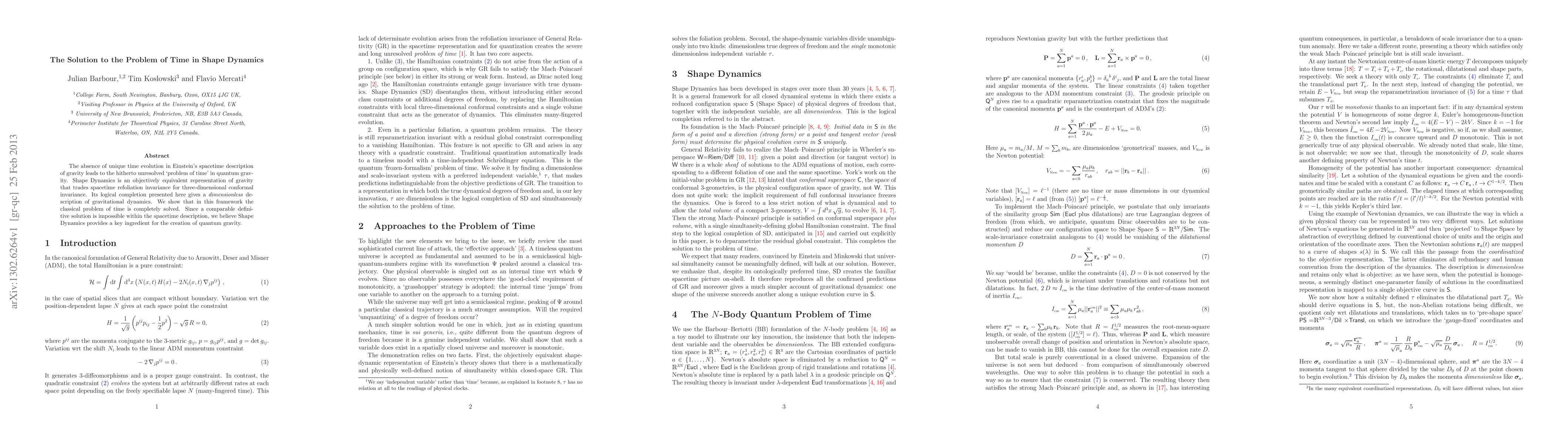 Shape Dynamics offers an alternative to Einstein's spacetime description of gravity, solving the classical problem of time by trading spacetime refoliation for three-dimensional conformal invariance, thus providing a promising framework for quantum gravity. This approach eliminates the unique time evolution issue, suggesting it may be a key to developing a definitive quantum gravity theory.