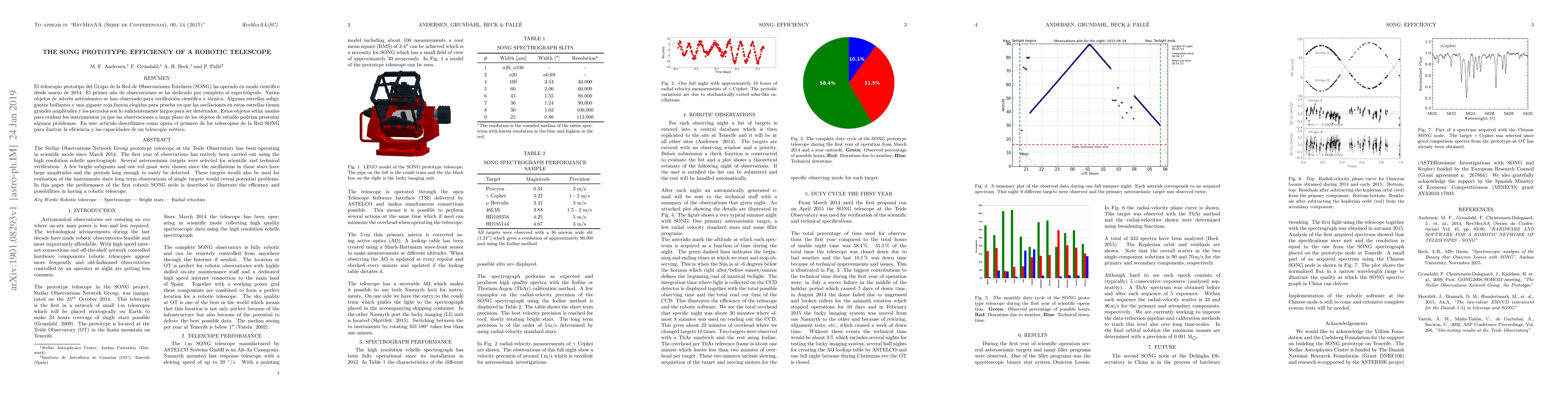 The SONG prototype robotic telescope at Teide Observatory has demonstrated efficient operation since 2014, using a high-resolution spectrograph for observing bright subgiants and red giants to verify its scientific and technical capabilities. The study highlights the potential and efficiency of robotic telescopes in astronomical research.